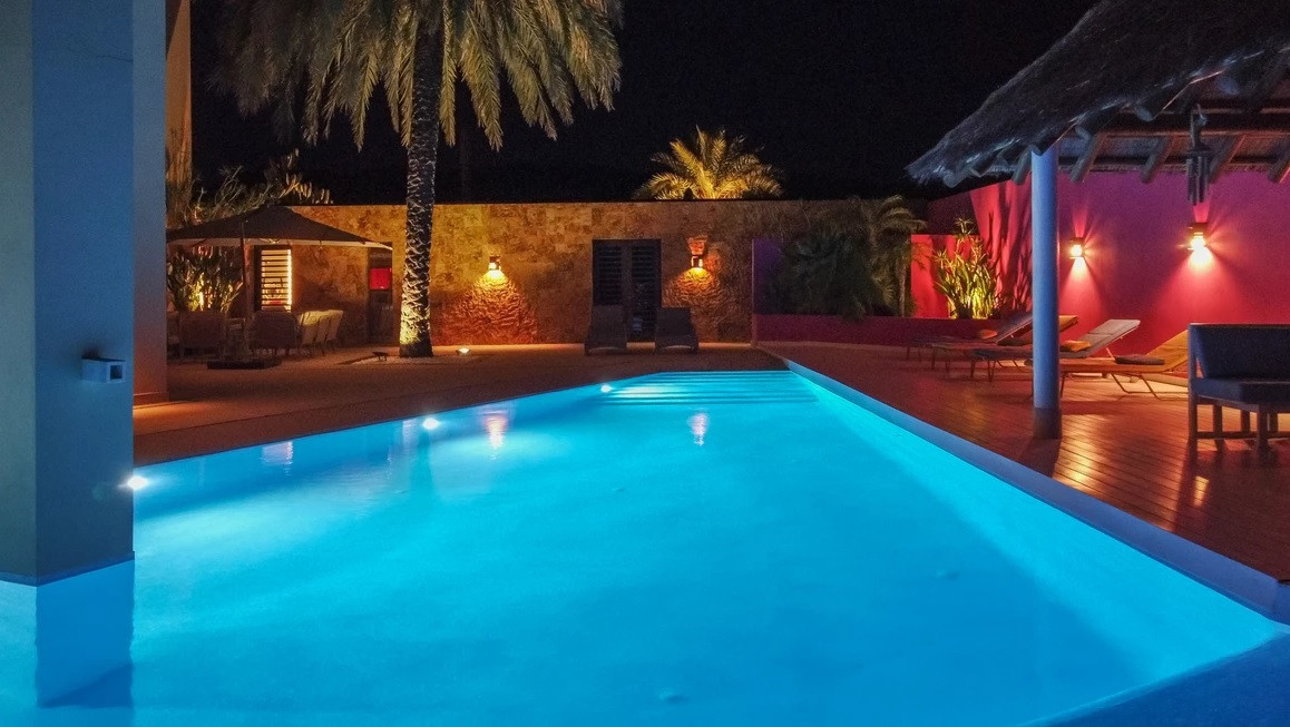 The main rooms, decorated with the nicest Georgetti furniture and kitchen all have access to the outdoor with certain areas having the Barragan-specific strong colours. Bright walls accentuate the space on the terraces near the Koi pond and the sun protected outside BBQ area, which connects to a split-level garden with fountain and strong colour wall surrounding, protected to wind and offering total privacy. The infinity swimming pool with stunning Siccis mosaic, IPE wooden terrace and Mexican style hut. The most dramatic style part of this mansion is the spacious outdoor living area with glass roof and electric sculpted lattice shutters which play with ever changing quality of light and shade from roof and front part separating the garden without taking away the sea view.