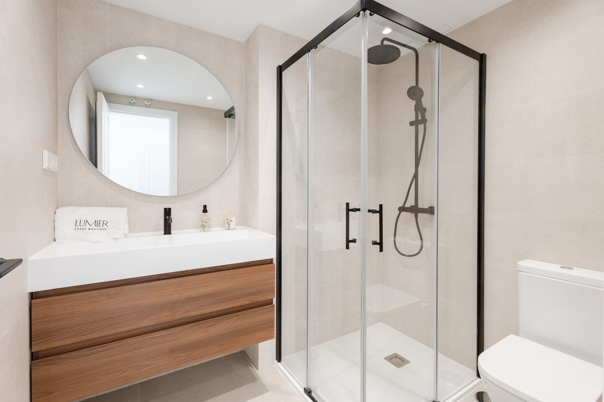 Sömnområdet har tre rymliga sovrum, var och en med eget badrum, samt en gästtoalett. Ett av sovrummen har också tillgång till en privat terrass med härlig utsikt.