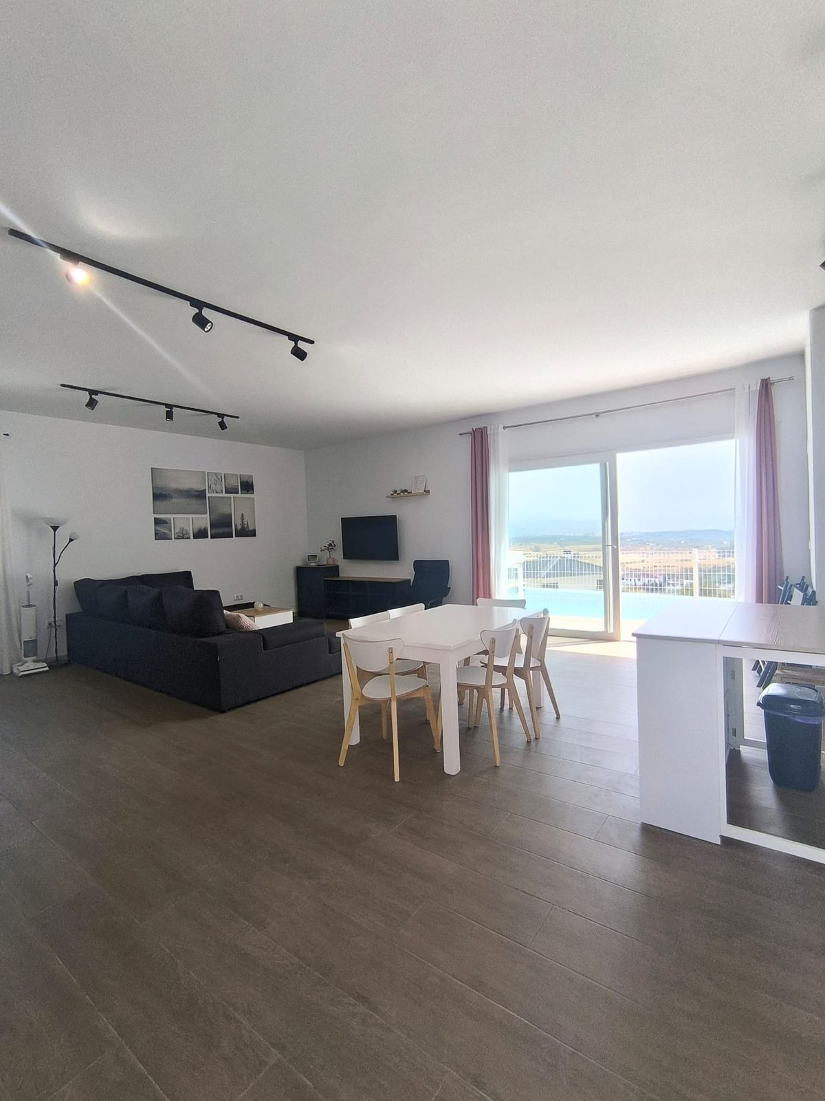 Modern single-family home in a prime location, right across from La Trocha shopping center in Coín. Built on a 566 m² plot, the house has 121 m² of built area, a 70 m² outdoor area, and a spectacular infinity pool with unobstructed views.