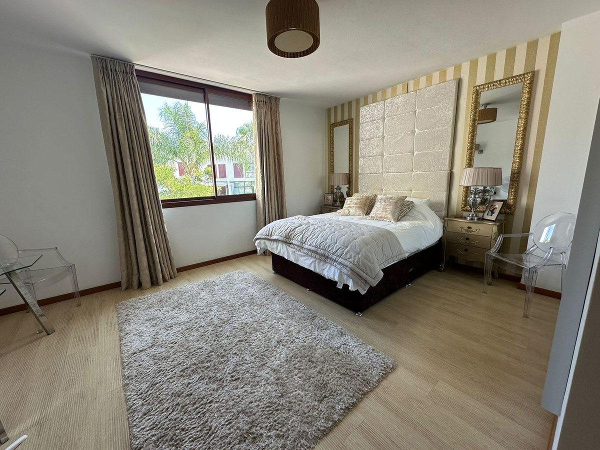 This turnkey ready & fully furnished, townhouse with spacios interiours offers 3 generously-sized bedrooms and 2 contemporary bathrooms, plus a convenient guest toilet. Large windows fill the living area with natural light. The fully fitted kitchen flows seamlessly into the lounge. Enjoy the private garden, and covered terrace with suncreen for al fresco meals. The rooftop solarium offers great potential.