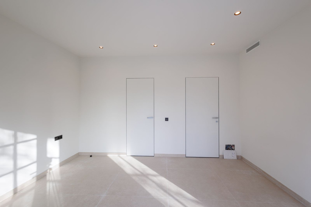 • Huvudsovrummet, som ligger på andra våningen, har ett privat badrum utrustat med både dusch och badkar, vilket skapar en spa-liknande atmosfär av avkoppling. Det har också en panoramabalkong med glaspartier, som erbjuder en fantastisk utsikt över de omgivande trädgårdarna – perfekt för en morgonkaffe eller en lugn kväll. Ett separat, specialdesignat walk-in-closet ger gott om utrymme och genomtänkt förvaring.
