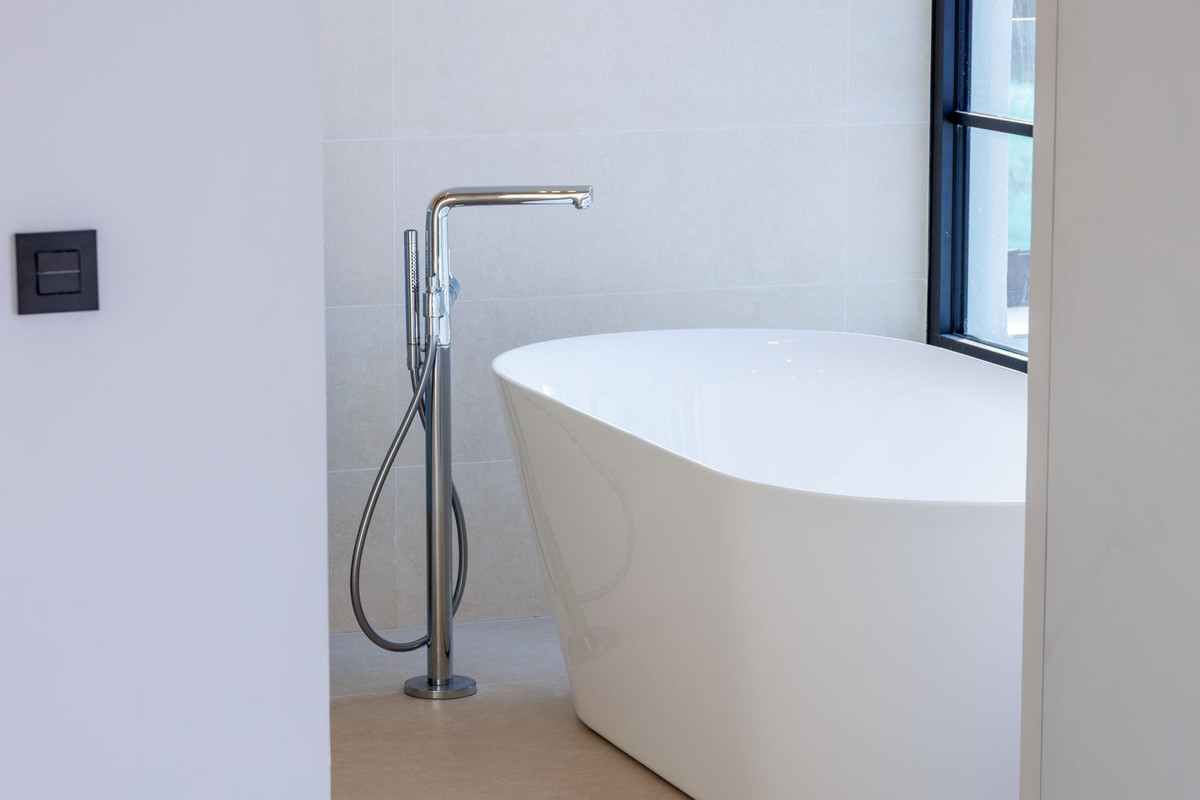 Alla badrum är utrustade med Hansgrohe-armaturer och elektrisk golvvärme, vilket ger extra komfort året runt.