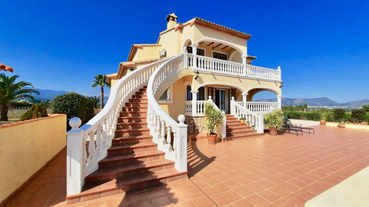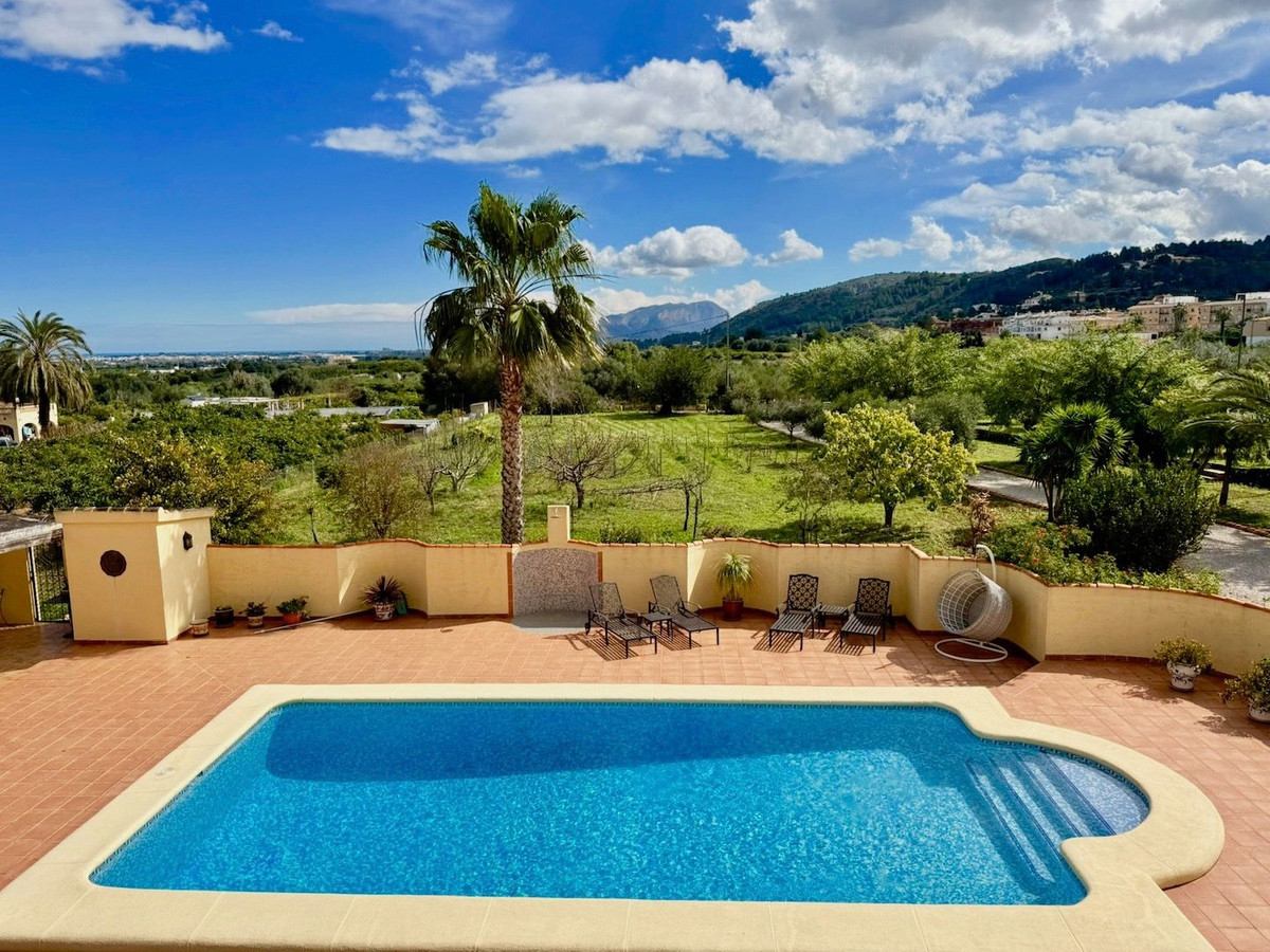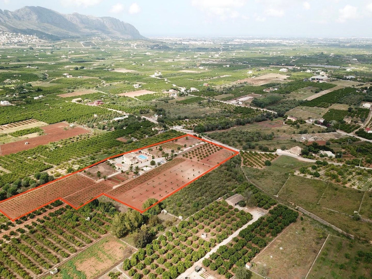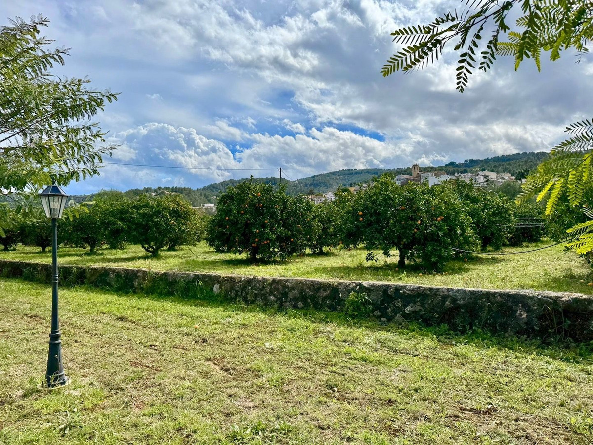 Nestled in the breathtaking Orba Valley, just a short walk from the charming village of Benidoleig, this enchanting 15,000m² estate is a dream come true. Benidoleig, with its picturesque streets, cozy cafés and the famous Cueva de las Calaveras, exudes authentic Spanish charm. The golden beaches of the Costa Blanca are only 15 minutes away, while the vibrant La Marina Shopping Centre in Ondara is just a 10-minute drive.