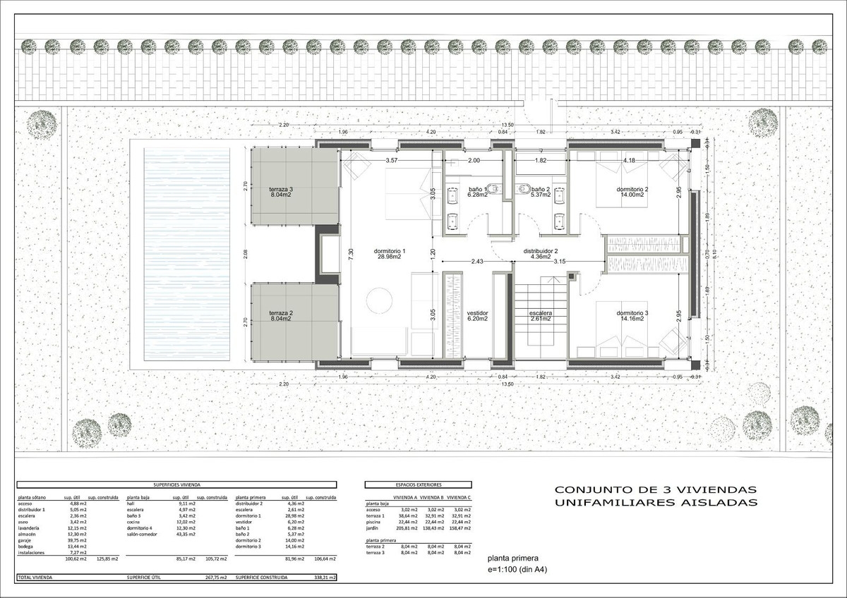 - The upper floor consists of three double bedrooms, two of which share a large bathroom. The master bedroom has an en-suite bathroom as well as a walk-in wardrobe and dressing area. In addition, this room has its own fireplace and two terraces, also overlooking the garden and pool.