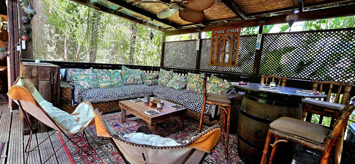 Cross the threshold and you're instantly transported. Designed for both indulgence and tranquility, the property offers a full bar and BBQ area, a stunning lagoon-style pool with cascading waterfalls, a personal gym, and a dedicated yoga and meditation deck complete with a built-in jacuzzi. The grounds are dotted with fruit trees, blending vibrant nature with calm luxury.