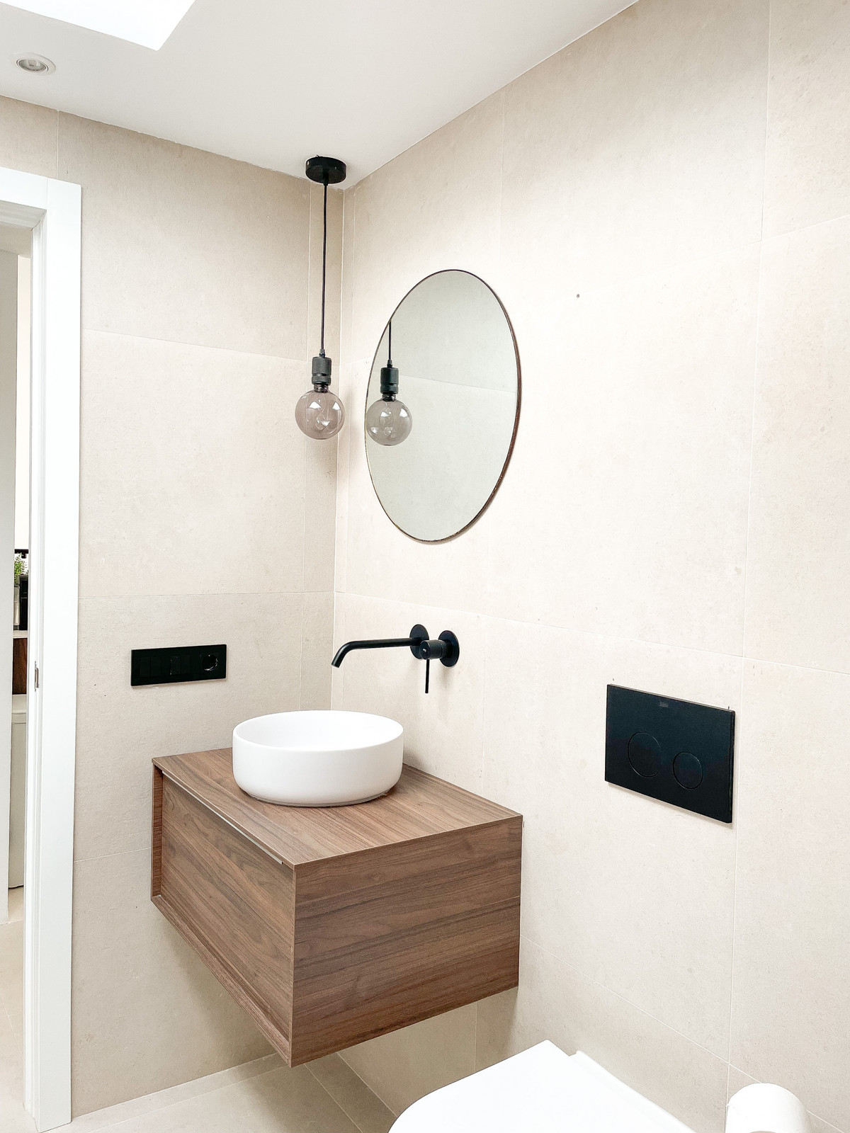 The custom kitchen features a nicely contoured island and top-of-the-line Bertazzoni appliances. The bathroom walls and outdoor areas are covered with 60x60 beige porcelain tiles, which are used throughout the design to provide coherence. The two bathrooms' sleek black features and skylights give them the ideal modern touch, and you can truly live comfortably in the sun here.