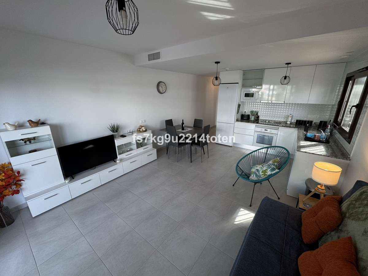 The open plan living area is a bright and airy space.  The corner L shaped kitchen comes with ample units and modern appliances and the room is large enough for the full size dining table and separate living room.