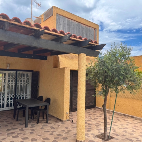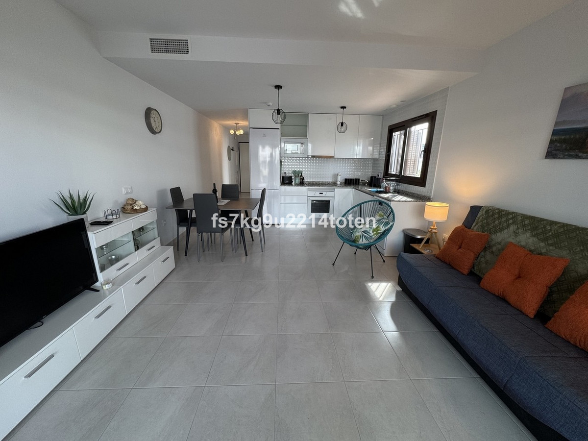 Large sliding patio doors open out on to the private outside space which consists of a tiled covered terrace as well as an open garden space which overlooks the swimming pool.  A private gate provides access directly into the communal grounds.