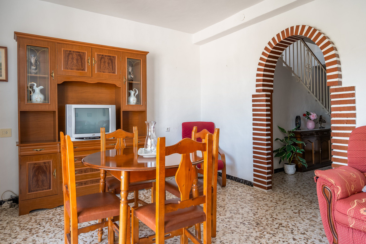 Detta charmiga radhuschalet i Tolox, Málaga, är precis vad du behöver. Med 177 m² fördelat på 3 våningar erbjuder huset 5 rymliga sovrum, 1 stort badrum och ett fullt utrustat kök. Fastighetens pärla är de magnifika balkongerna med spektakulär panoramautsikt över den pittoreska byn och de omgivande bergen – perfekt för att njuta av solen.