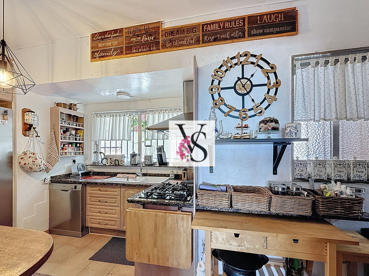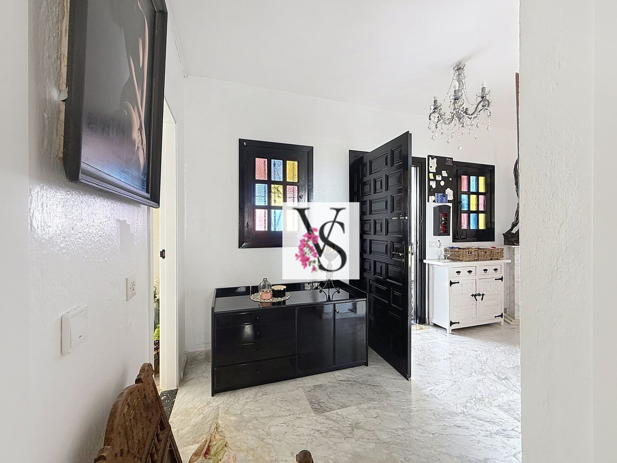 Huvudbyggnaden har tre sovrum (varav ett för närvarande fungerar som kontor), två eleganta badrum, ett charmigt lantligt kök, ett mysigt vardagsrum med tillgång till solterrasserna, en separat tvättstuga och ett rymligt förråd (trastero).