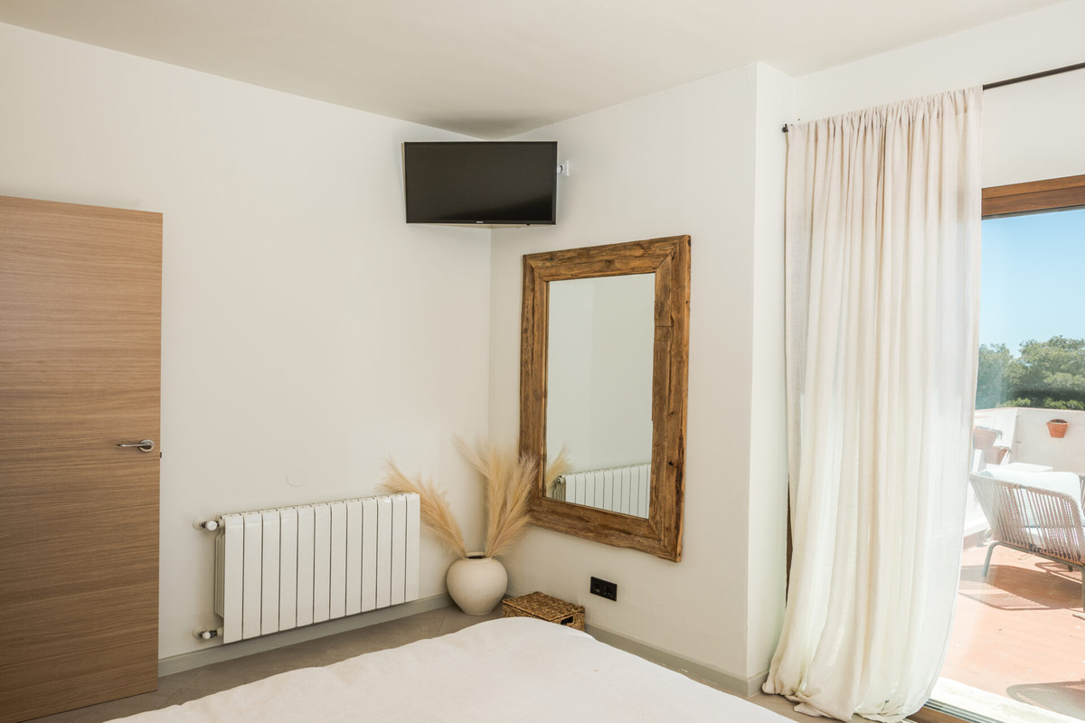 This beautifully presented south-facing villa offers spectacular, uninterrupted sea views from every room and terrace — including breathtaking 90-degree panoramas where you can watch the sunrise behind Ibiza and gaze out beyond the iconic lighthouse.