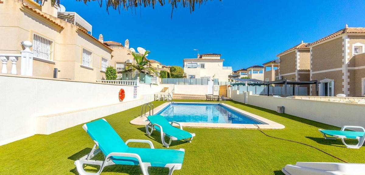 We are pleased to present this well-maintained, detached villa located in the sought-after residential area of Blue Lagoon, Villamartin.