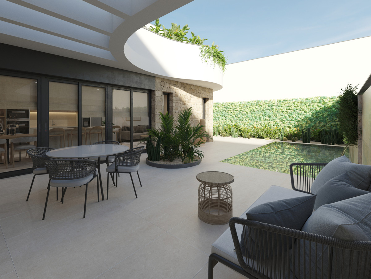 Tystnad: Njut av ditt eget privata utrymme med trädgård och pool i ett mycket lugnt och privilegierat bostadsområde.