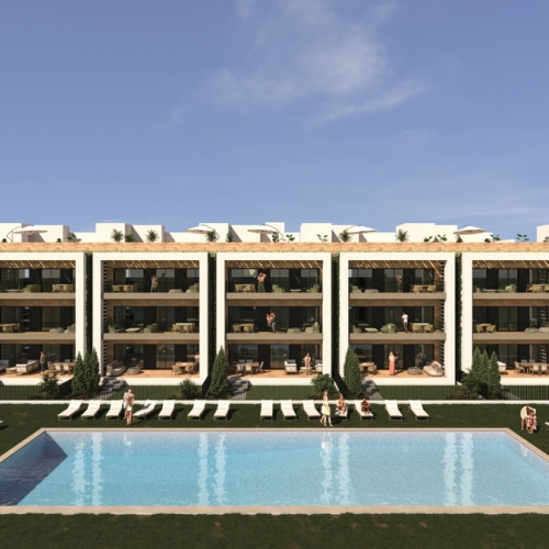 Modernstilade lägenheter, designade med öppna ytor och stora fönster, köksö, master bedroom med walk-in-closet. Två badrum. Bottenvåningarna har stora terrasser mot poolområdet, medan penthouse-lägenheterna har ett solarium på över 70 m². Alla bostäder har en underjordisk parkeringsplats och ett förråd.
