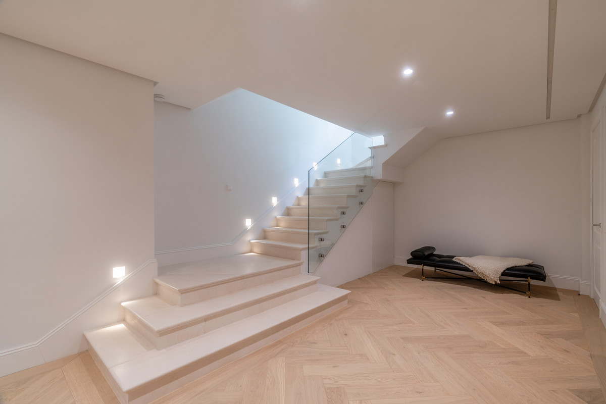 At the heart of the home lies a bespoke interior design concept that celebrates simplicity, comfort, and craftsmanship—where oak floors, linen fabrics, stone detailing, and curated furnishings create a harmonious and inviting environment.