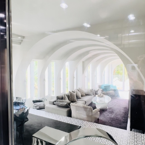 Spread over three floors plus a basement, all connected by a lift and stairs, the property has four bedrooms, three full bathrooms and a toilet.