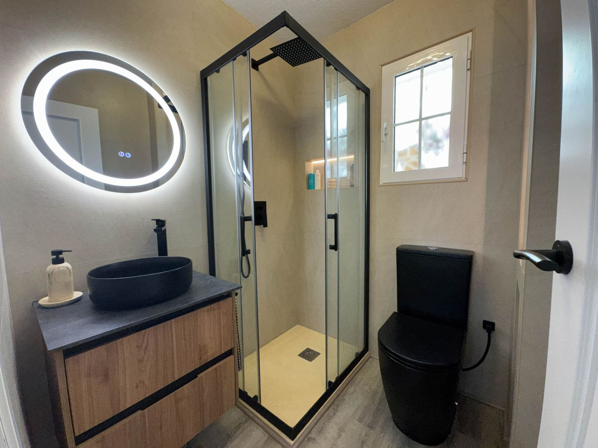 Fastigheten är fördelad på två våningsplan med två dubbelrum och ett enkelrum, samt två kompletta badrum – ett på varje våning. Den ljusa interiören rymmer ett modernt, fullt utrustat kök, ett rymligt vardagsrum samt direkt tillgång till ett stort privat solarium med jacuzzi. Här finns också en balkong på övervåningen och en grillplats vid husets sida.
