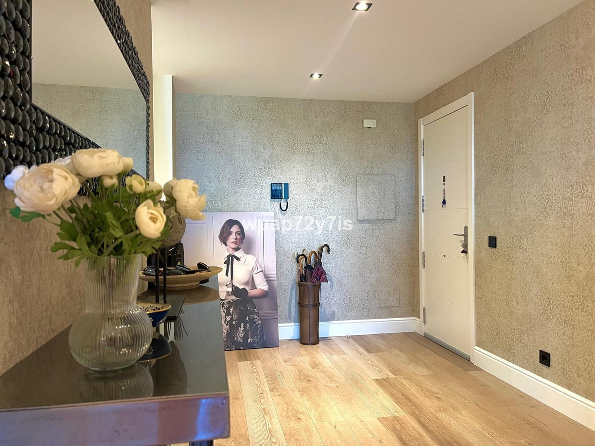 This apartment is located in incredible Mirador de Estepona Hill urbanisation, just 5 minutes from the center of Estepona, 10 minutes from the incredible beach and 23 minutes from the sunny Sant Pedro. This beautifully appointed apartment offers a spacious layout with three spacious bedrooms and two exquisite bathrooms, including a luxurious en-suite in the master bedroom. A thoughtful guest cloakroom with double vanities adds an extra layer of convenience and style. The spacious living area, originally 40 m², was partially reconfigured to create a custom dressing room, seamlessly integrated into the master bedroom for maximum comfort and privacy.