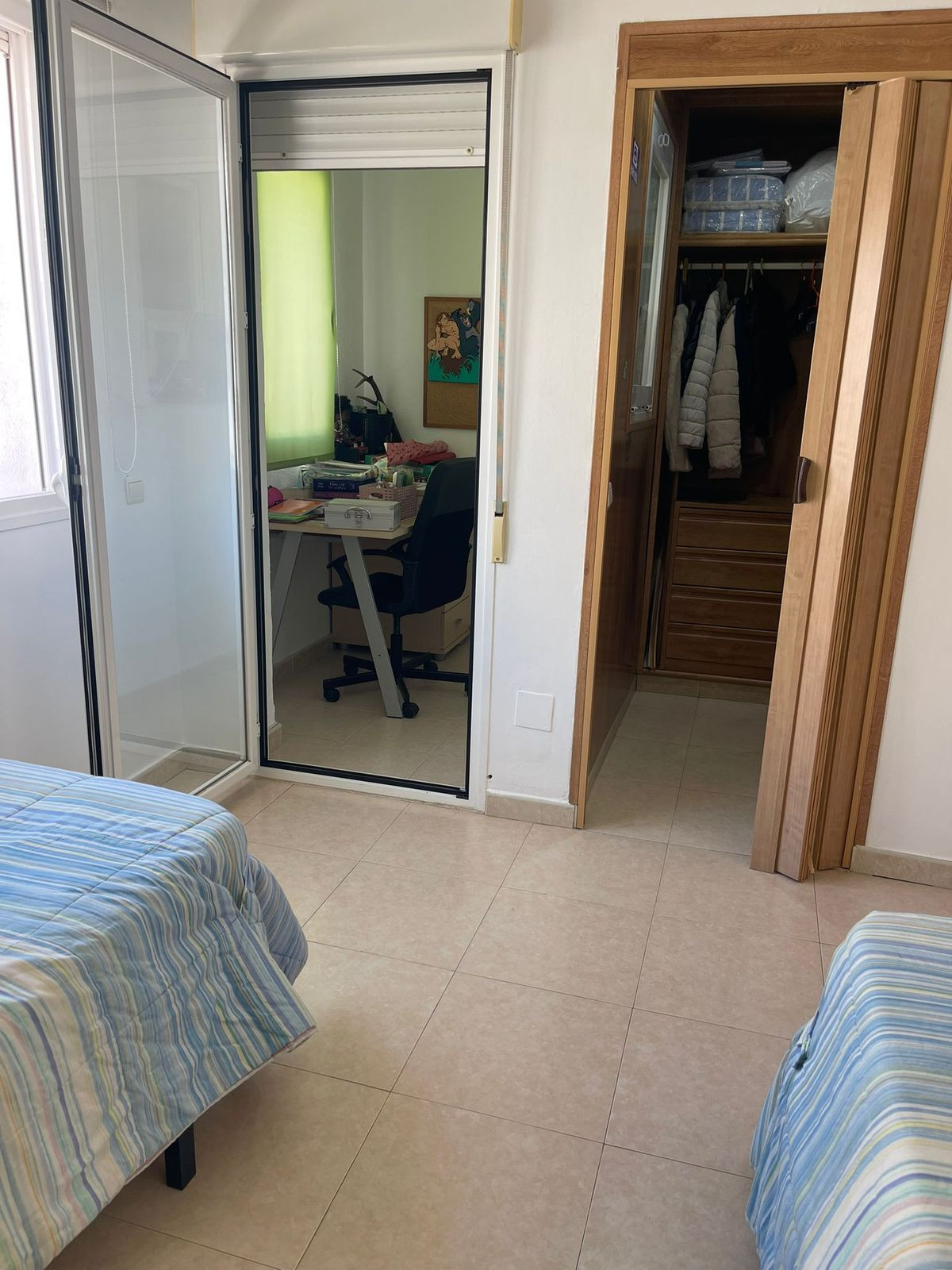 On the first floor, you'll find two large bedrooms—one with a very spacious private terrace overlooking the park, and the other featuring a walk-in wardrobe and separate office space. This level also includes a full bathroom.