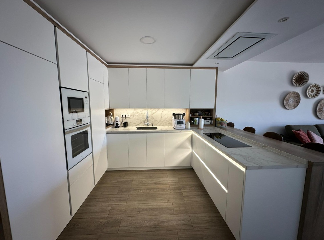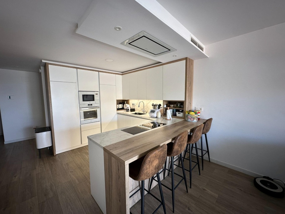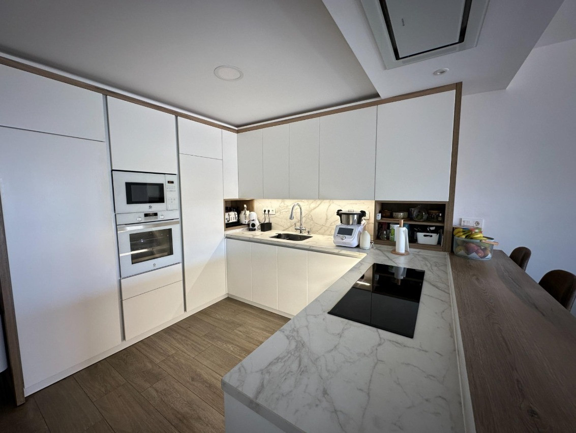 a functional, modern, fully equipped kitchen, open to the large living room to the terrace and