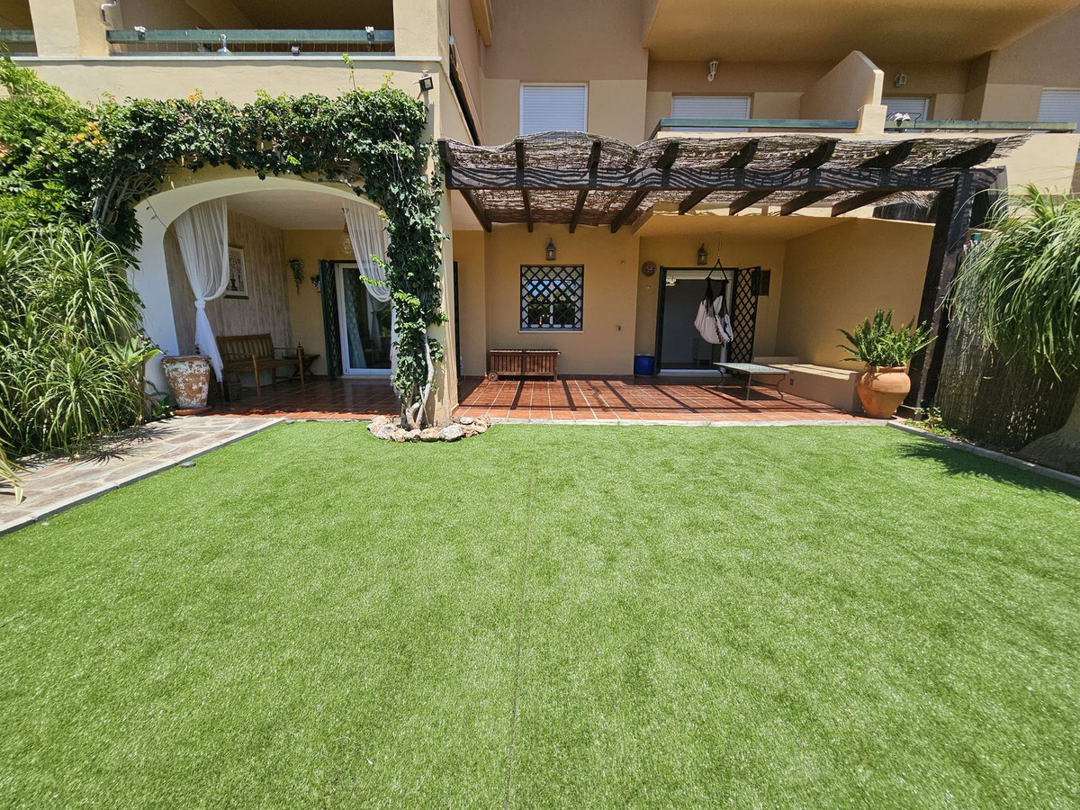 Denna fantastiska lägenhet med 2 sovrum har ett fantastiskt utomhusutrymme, med täckt terrass och en extremt stor privat trädgård med grillplats, pergola och direkt tillgång till poolen, padelbanan och lekplatsen. Denna fastighet ligger i Selwo-området i Estepona, nära Resina Golf, den nya Padel Sports Club och den amerikanska skolan. Lägenheten i sig ligger på bottenvåningen med söderläge vilket garanterar sol hela dagen. Det finns 2 sovrum och 2 badrum. Det stora sovrummet har ett eget badrum med omklädningsrum samt direkt tillgång till den täckta terrassen och trädgården. Köket har utökats med ett butlerkök med direkt tillgång till en andra terrass. Vardagsrummet/matsalen är ljust med gott om naturligt ljus och leder direkt ut till den fantastiska terrassen och trädgården. Det finns varm och kall luftkonditionering i hela lägenheten. En underjordisk parkeringsplats ingår i priset och en hiss tar dig från lägenhetsdörren ner till garagenivån. Det finns gott om parkeringsplatser på gatan för gäster eller för de med mer än 1 bil. Området är välskött och erbjuder en stor pool, en lekplats och en padelbana för de boende.
