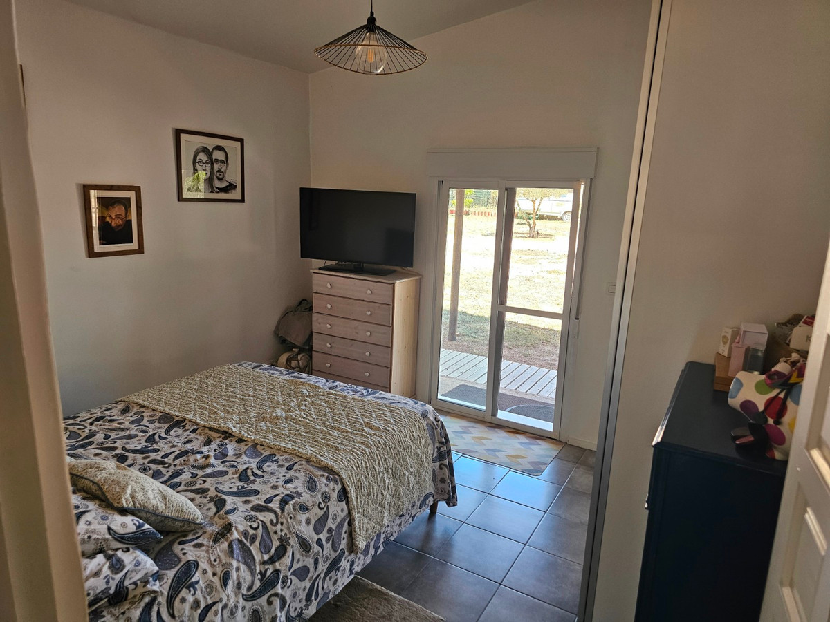 There is also a beautiful timber building with 2 bedrooms , 1 bathroom , a fully equipped kitchen and living room that is rented out to guests .