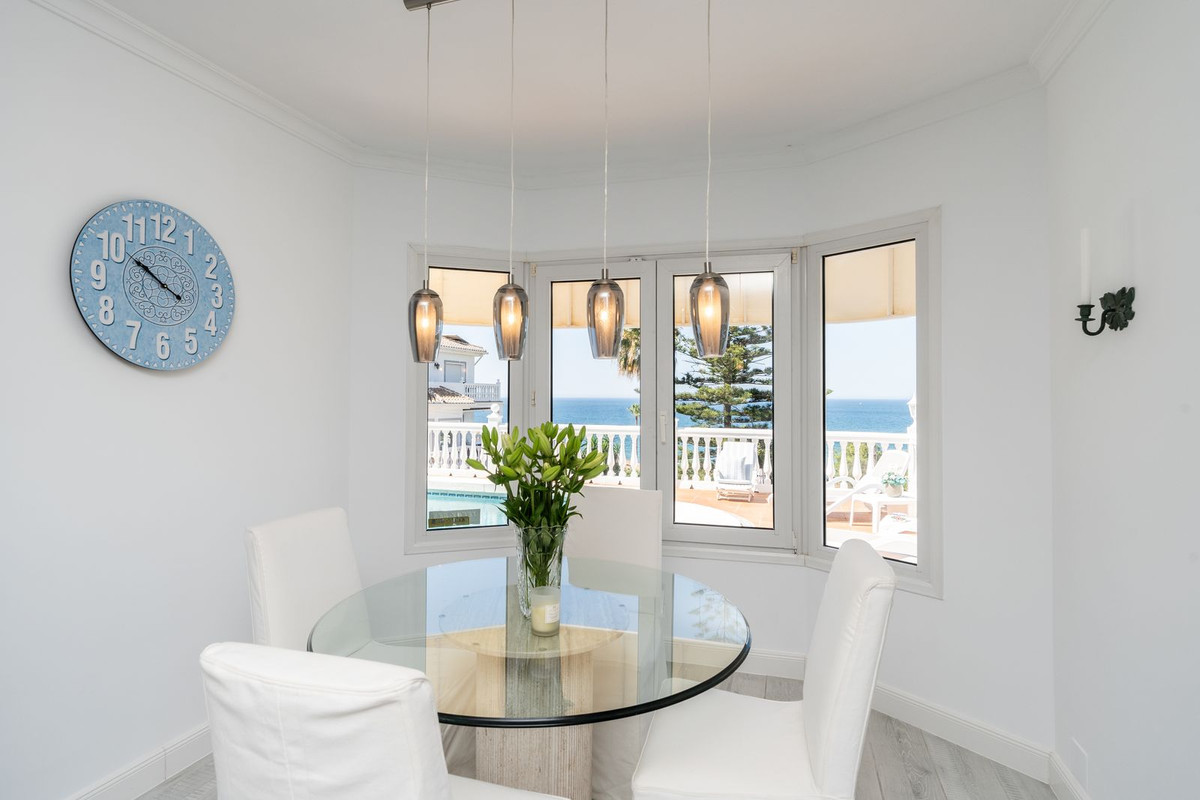 Located within a very short distance of El Chaparral Golf in Mijas Costa, you are no further than 2km from La Cala de Mijas and 4.5km from Fuengirola making it ideal for schools, shops and amenities. Built on a corner, elevated plot just 200m from the beach, this incredible villa offers privacy, sea views from pool and first floor level and all day sun and shade for those that need it.