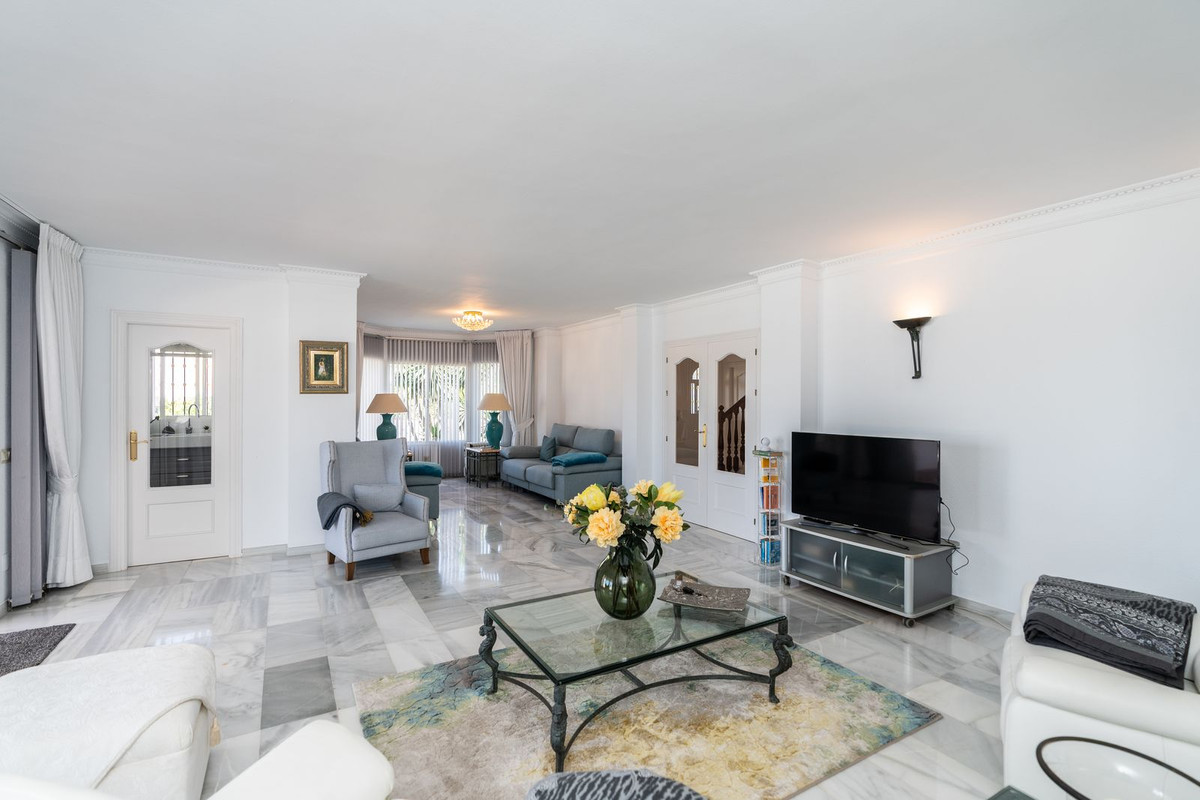 The villa is entered through imposing wrought iron gates with a driveway leading into a large 4 car garage. The main living area is located on the first floor and comprises a huge living and dining area with access out to the terraces and the swimming pool with sea views. The kitchen has been recently refurbished and also has a dining area and sea views with utility room off the side. There are 3 very large bedrooms, all with en-suite bathrooms as well as a guest toilet. Upstairs, the master bedroom suite occupies the whole space with an impressive bedroom and private terrace to enjoy the sea views. The bathroom is something to behold with a jacuzzi bath, twin vanity units and a separate room with a huge walk in shower. Outside, the 10m x 4m swimming pool is perfectly connected to the main terrace and the house, ideal for entertaining or watching over younger family members. A lawn garden is located to the side and behind the house and is easily manageable.