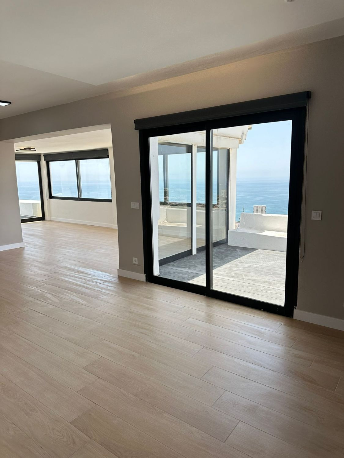 We offer this wonderful penthouse for sale in the coastal town of Mijas, province of Málaga. Located in a gated community with a communal pool and well-maintained landscaped areas, this apartment will make your stay a healthy experience, filling you with vitality and good humor. 17 km from the center of Málaga city, it will provide you with access to all the services and facilities you may need (shops, supermarkets, sports, educational, and health centers, public transportation, hospitality and catering services, government offices, and leisure facilities, such as the Miraflores Golf Course (1.7 km) or Torre Nueva Beach (2 km), among others. This wonderful home is located on a single floor and is located in the penthouse of a residential building. This first-floor apartment, with no elevator, occupies an exclusive wing of the floor, ensuring privacy as it is not shared with neighbors. It has a constructed area of 115 m², distributed among: 3 bedrooms with built-in wardrobes, a separate kitchen, two full bathrooms (one en suite), and a spacious living-dining room with access to a 22 m² terrace. This spacious area, which seems to divide the terrace in two, is located inside the living room. It features large windows and large glass doors, from which you can enjoy the beautiful 360º panoramic sea views in any season, regardless of the weather (it is sunny for most of the day). You can also spend unforgettable moments with your loved ones enjoying the beneficial Mediterranean climate on the terrace on summer nights.