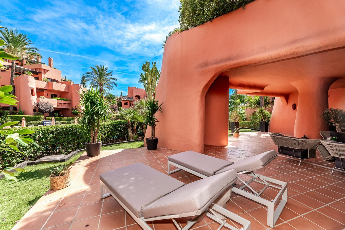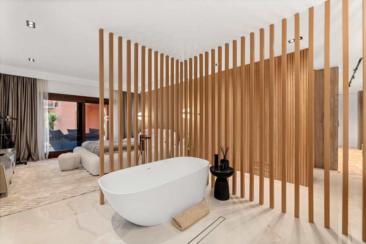Just 100 meters from Guadalmansa Beach, this apartment opens onto a spacious hall leading to a fully equipped kitchen and a bright and elegant living-dining room, ideal for entertaining. It features three bedrooms, two of them with a full en-suite bathroom and dressing room, plus a separate bathroom.