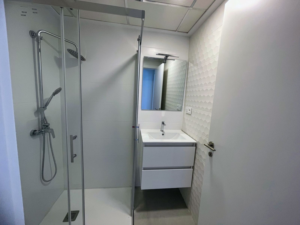 This property features two bedrooms with fitted wardrobes, two bathrooms, a spacious living/dining area, and a fully fitted kitchen. It also boasts a large private roof solarium with breathtaking views, air conditioning, underfloor heating in the bathrooms, and a dedicated parking space. The complex offers a communal swimming pool and gardens, perfect for relaxation.