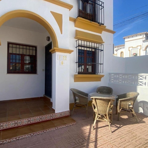 This South Facing, Two Bedroom, Top Floor Corner Apartment is located within a 10 minute walk of a main chain supermarket, JYSK furniture store, and a selection of café bars and restaurants. Villamartin Golf Course is just a 5 minute drive away, while the popular La Zenia Boulevard shopping centre and the beautiful beaches of the Orihuela Costa are only 10 minutes by car. Built in 2023, this stylish first-floor apartment boasts a modern design and bright interior. The open-plan living area features double sliding doors leading out to a partly covered terrace with views over the beautifully laid out communal pool area.  The spacious fitted kitchen offers ample work and storage space along with a breakfast bar. There are two double bedrooms, both with built-in wardrobes, and two sleek shower rooms with under floor heating—one of which is en suite. A standout feature is the impressive 60m² private solarium, accessed via the terrace, offering ample space for sunbathing, entertaining, or enjoying the views. Additional benefits include air conditioning, off-road parking, and access to a stunning communal pool—all set in the heart of Costa Blanca South.\n