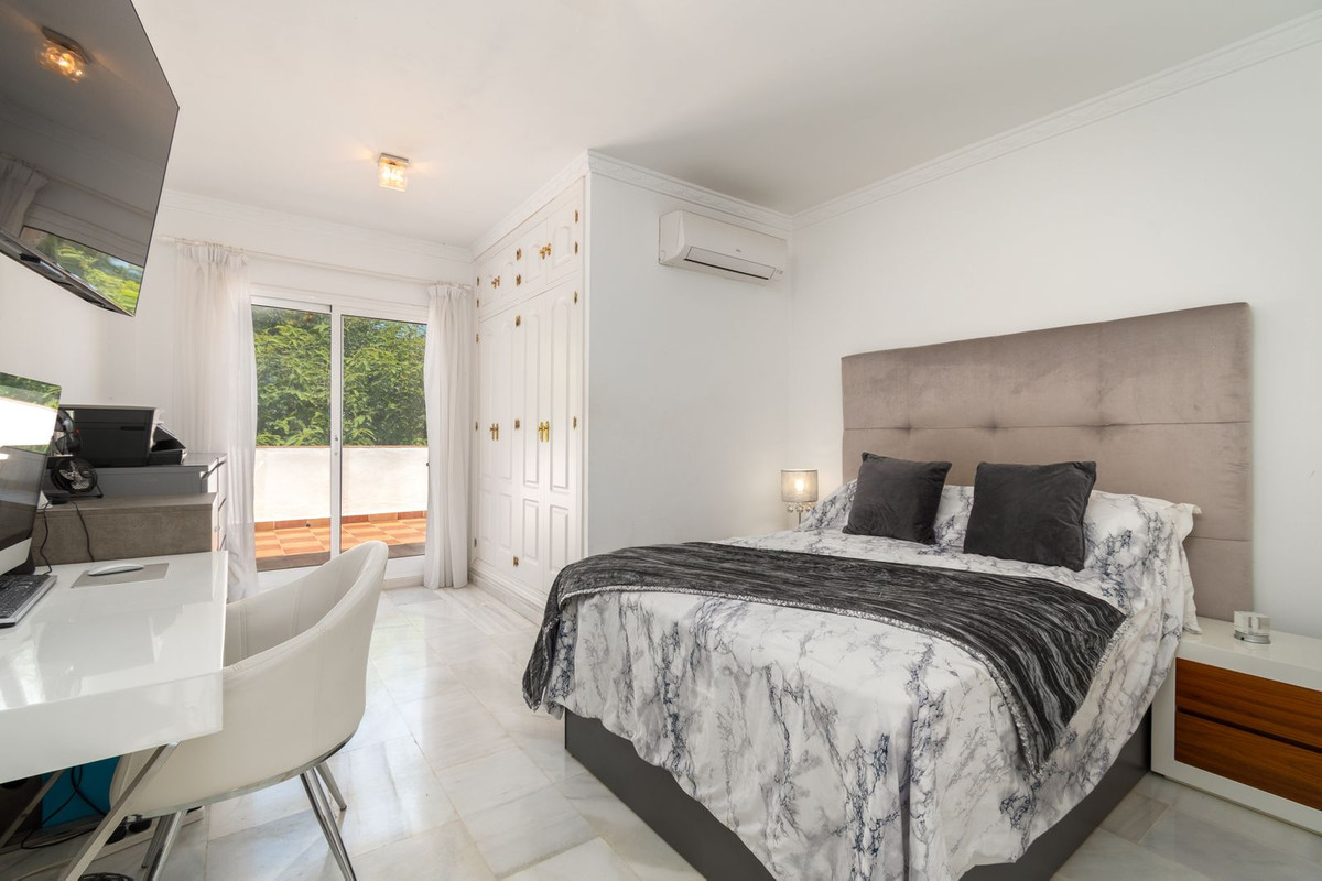 Just 4 minutes by car (2.5 km) from the vibrant centre of La Cala de Mijas, this elegant villa offers 378 m² of built area on a generous 2,559 m² plot, divided into two parts.