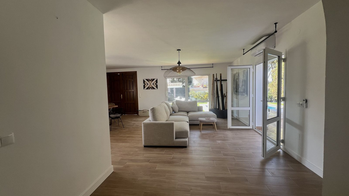 Vi presenterar denna mysiga villa belägen i ett av de lugnaste och mest exklusiva områdena i Marbella, omgiven av tallskogar, skyddade sanddyner och bara några steg från Cabopino-stranden. Ett privilegierat läge med direkt tillgång till havet och en unik naturmiljö.