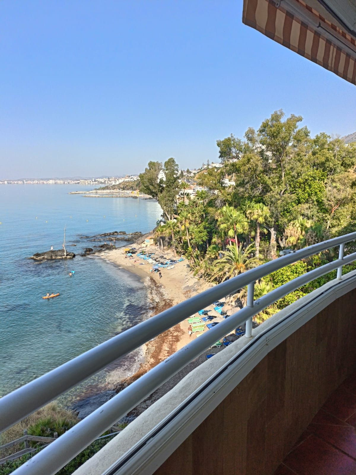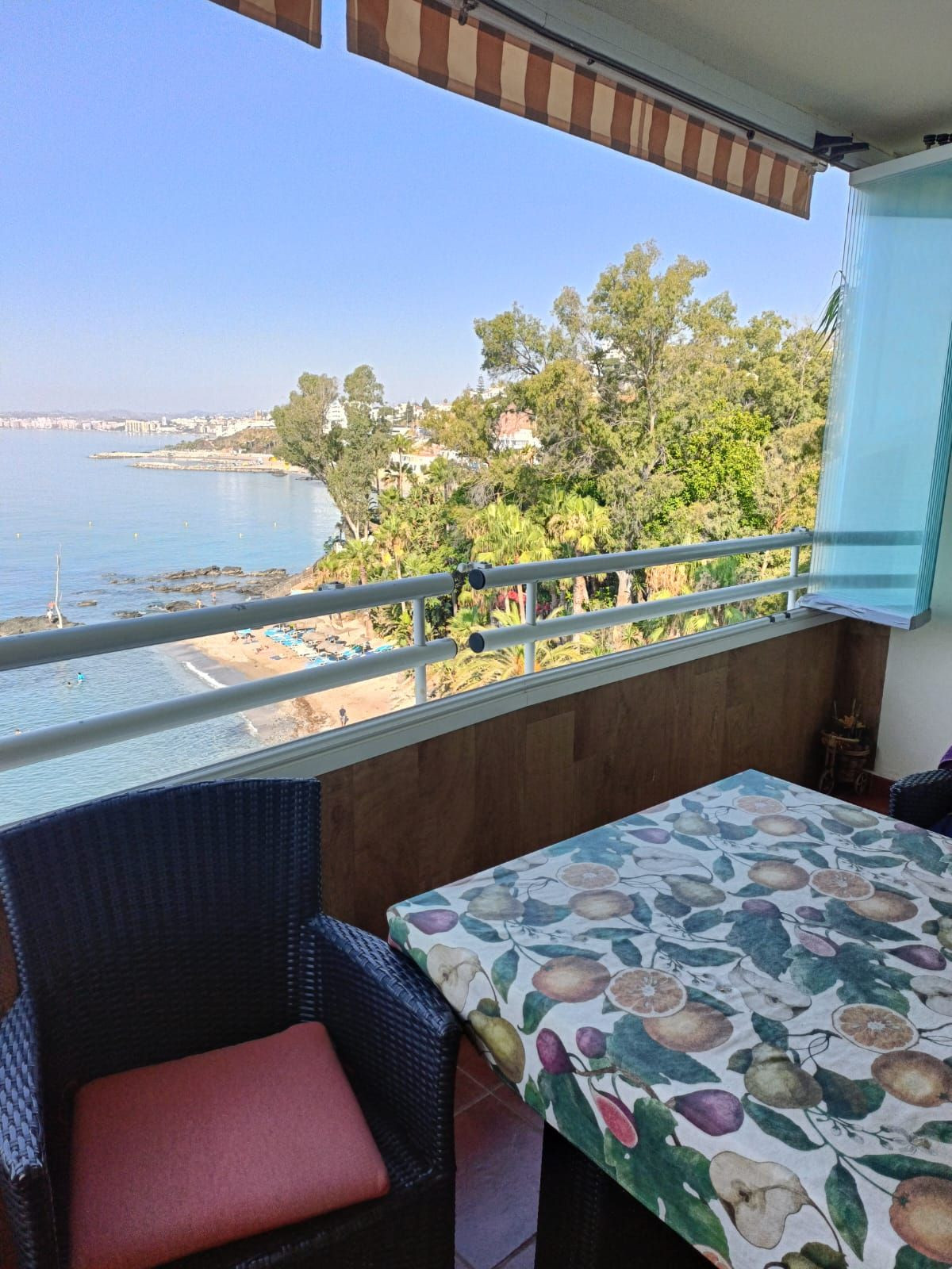 Rare opportunity to purchace a fantastic beach front apartment in Benalmadena Costa . Residencial Costa Quebrada offers stunning sea views and lush gardens, Development located on the cliff by the sea , so despite the fact that apartment is on the ground floor , it's very much elevated. Apartment has 2 bedrooms 2 bathrooms spacious leaving room white open plan kitchen and a large terrace. Very big underground parking is included in the price. Location cant be better , many restourants within the walking distance . Bus stop just outside international schools 5 min drive. If you are looking for amazing sea view from your terrace dont look any further