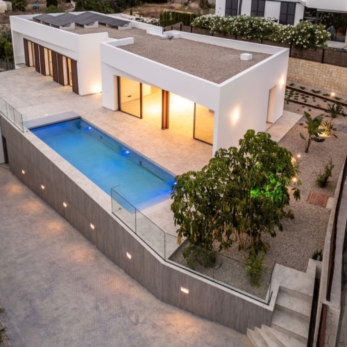 Discover this charming, renovated villa in traditional style, located in the quiet and green urbanization of Montemar in Benissa. Only 2 kilometers away from the beautiful beach of La Fustera and surrounded by natural areas, this property offers ultimate privacy, tranquility and a pleasant Mediterranean lifestyle. The villa has a total built area of 420 m2 and a usable area of 219 m2, distributed over two floors. Through the pedestrian entrance you reach the upper floor where the main house is located. Here you enjoy a spacious, bright living room with large windows and views of the surrounding nature. Adjacent you will find a dining room and a fully equipped open kitchen. Furthermore, this floor has two comfortable double bedrooms that share a bathroom. Outside you will find an attractive barbecue area, ideal for enjoying summer evenings with family or friends. The ground floor is arranged as a spacious and independent guest house, consisting of a lounge, a dining room, a kitchen, two bedrooms and two bathrooms, one of which was recently renovated. This floor also features an east-facing balcony and two spacious terraces, one on the north side and one on the south side. A separate laundry room, strategically located between the two floors, provides additional convenience and is accessible to both residents and guests, ideal for rentals. Below the guest house are two practical storage rooms. Situated lower on the plot is the recently renovated swimming pool with a spacious sun terrace, completely surrounded by mature trees that ensure optimal privacy. The municipality has given permission to remove some trees to create additional sunlight on the terrace, if desired. The villa also has a carport for one car, air conditioning, electric radiators, a garden with fruit trees and automatic irrigation. The location is excellent: Only 7 minutes' drive from idyllic coves such as Cala Baladrar and Playa La Fustera and only 15 minutes from both the charming coastal village of Moraira and the lively resort town of Calpe. This property is perfectly suited as a permanent residence for several family members, as a vacation home, or as an investment property for rental thanks to its division into two independent floors. Do not hesitate any longer and request your visit now!