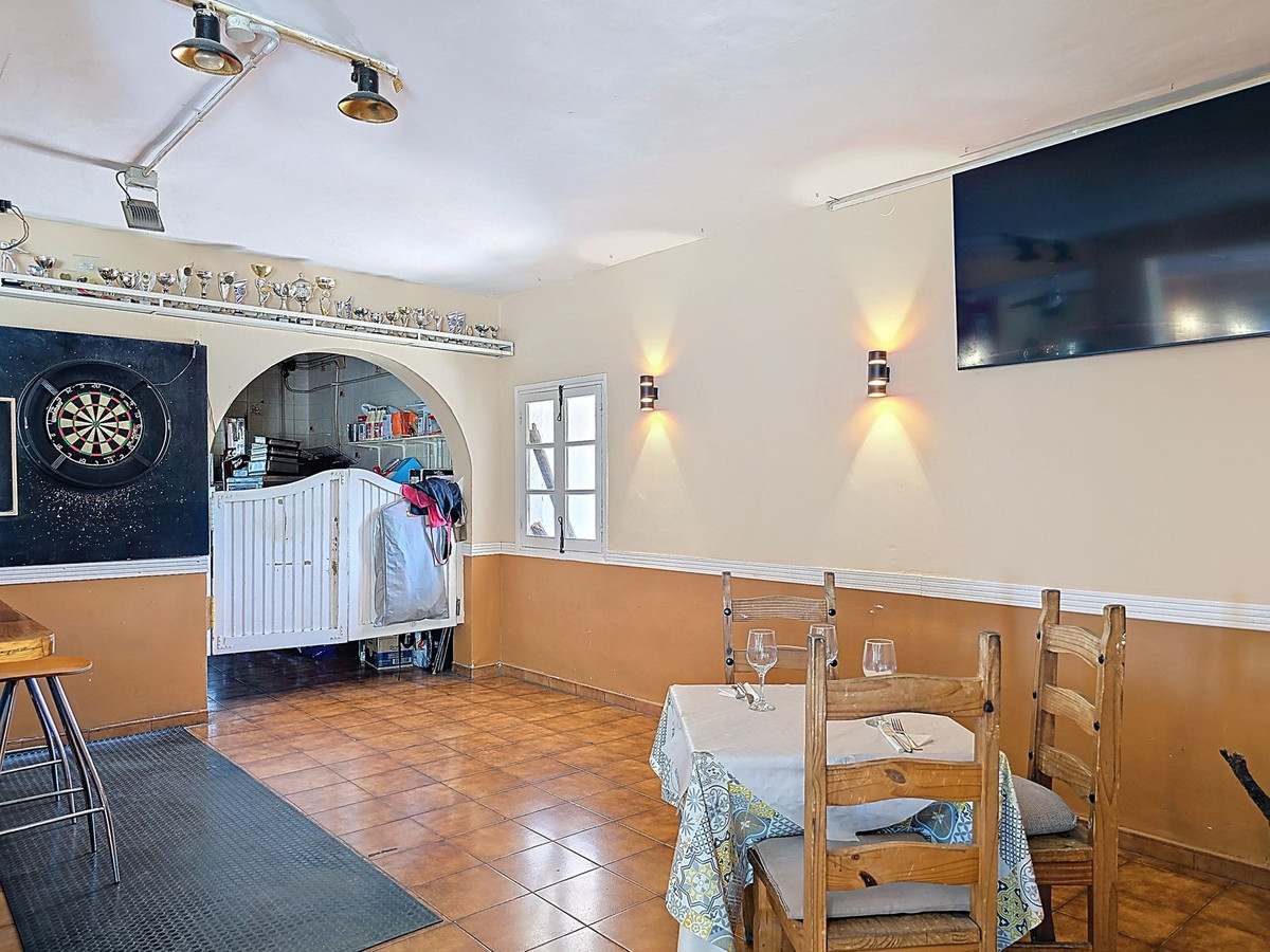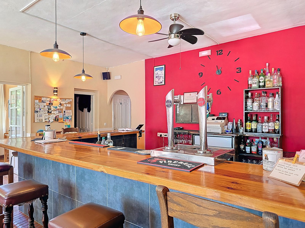 Første etasje er dedikert til forretningslokaler og inkluderer en stor, delvis skyggefull terrasse foran med god plass til sitteplasser for kunder – ideelt for utendørs servering i en avslappet atmosfære. Inne har barområdet et innbydende spiseområde, biljardbord og en koselig åpen peis. En separat privat spisesal er perfekt for gruppebestillinger eller spesielle arrangementer.