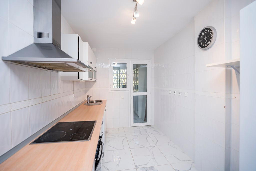 Apartment with private garden and with three bedrooms in Genova in Elviria Playa in East Marbella. Two bathrooms, living room, kitchen, utility room and sunny terrace. South orientation. Lift. Walking distance to the beach and all local amenities. Lift. Underground parking space included.