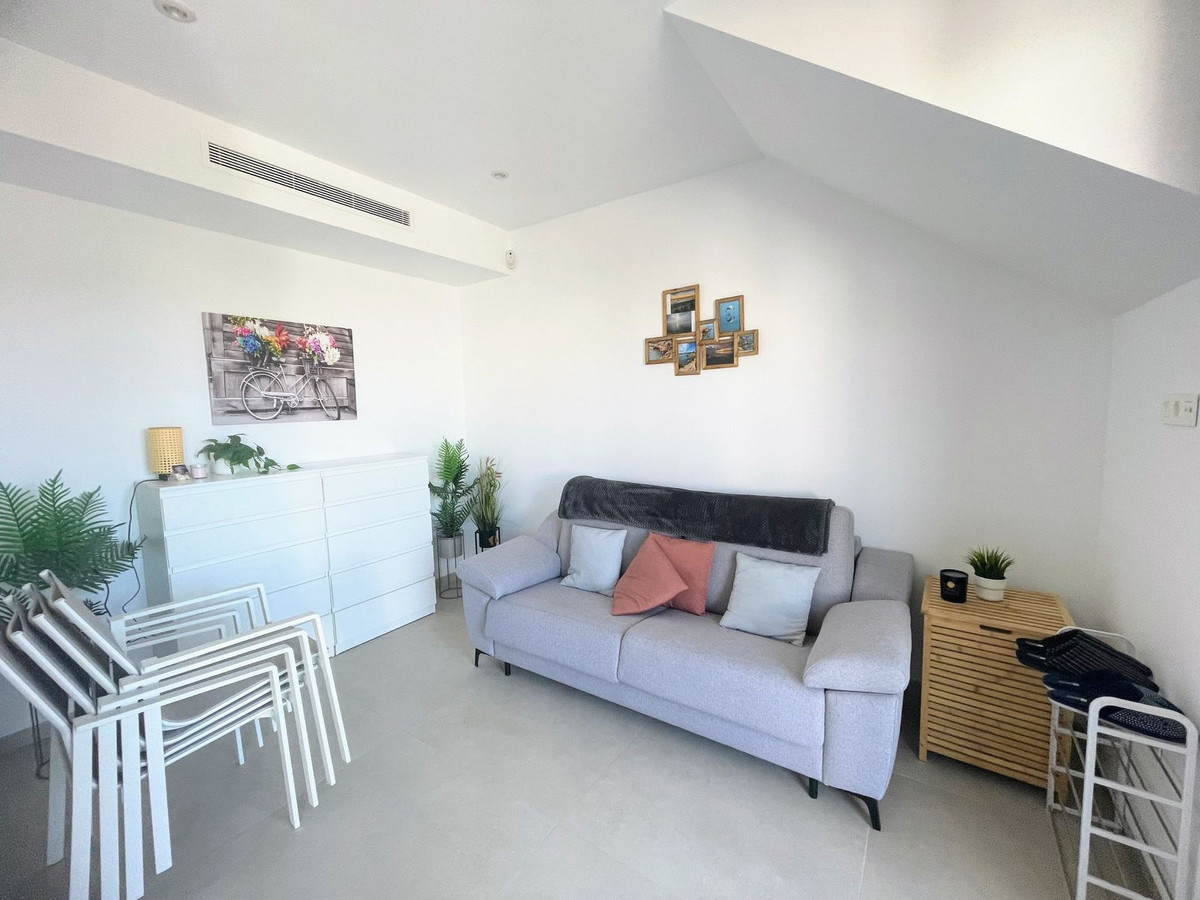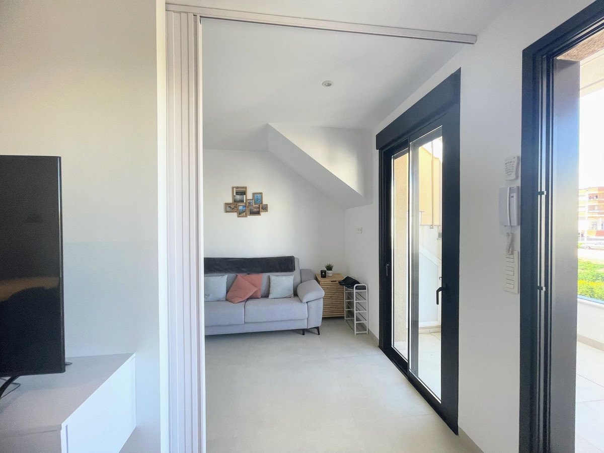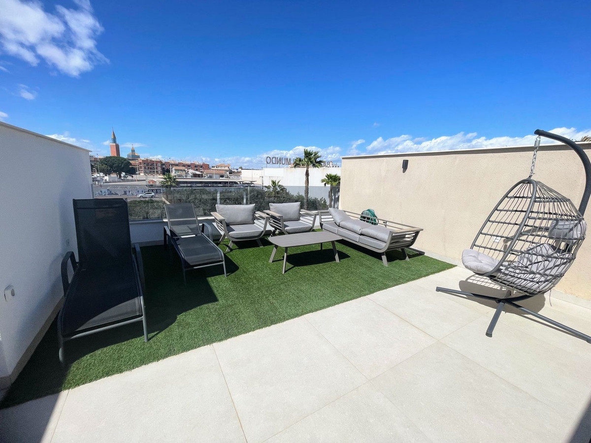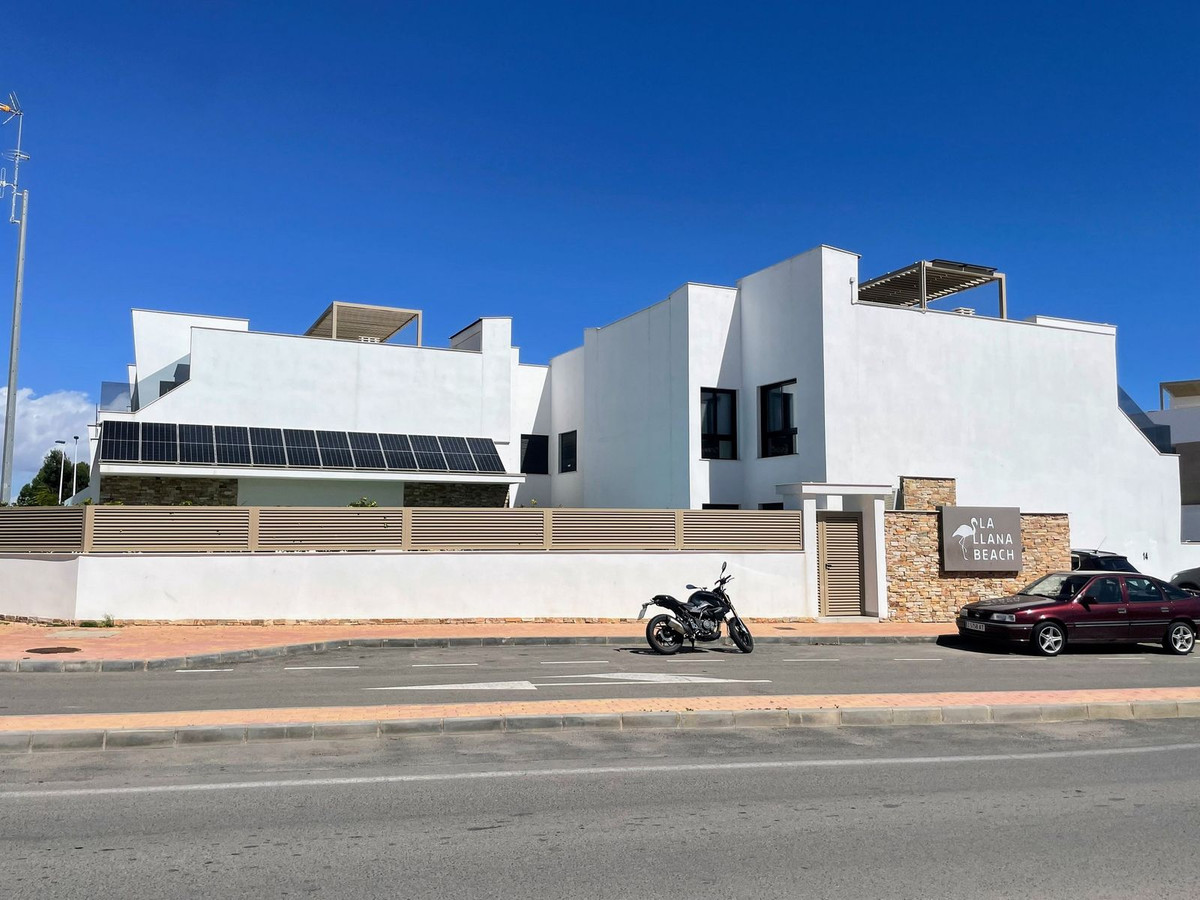 Discover La Llana Beach Resort located in the heart of San Pedro del Pinatar. This Penthouse Apartment consists of 3 bedrooms and 2 bathrooms, living/dining area and a fully fitted kitchen. The property benefits from a front terrace, a spacious solarium with outside kitchen, parking space and storage room