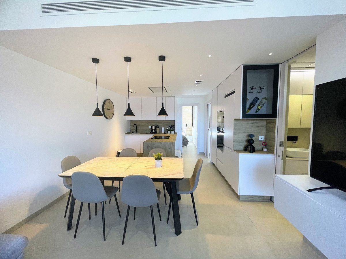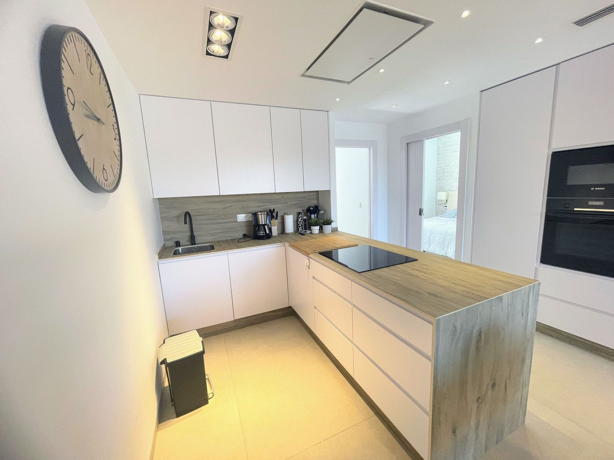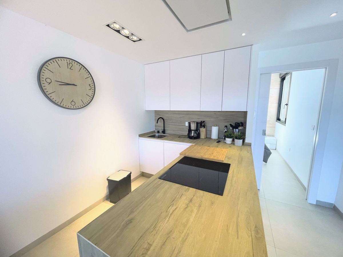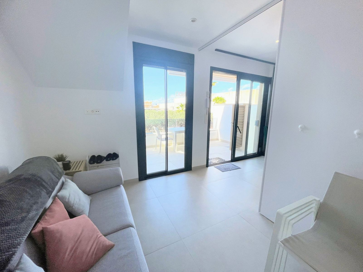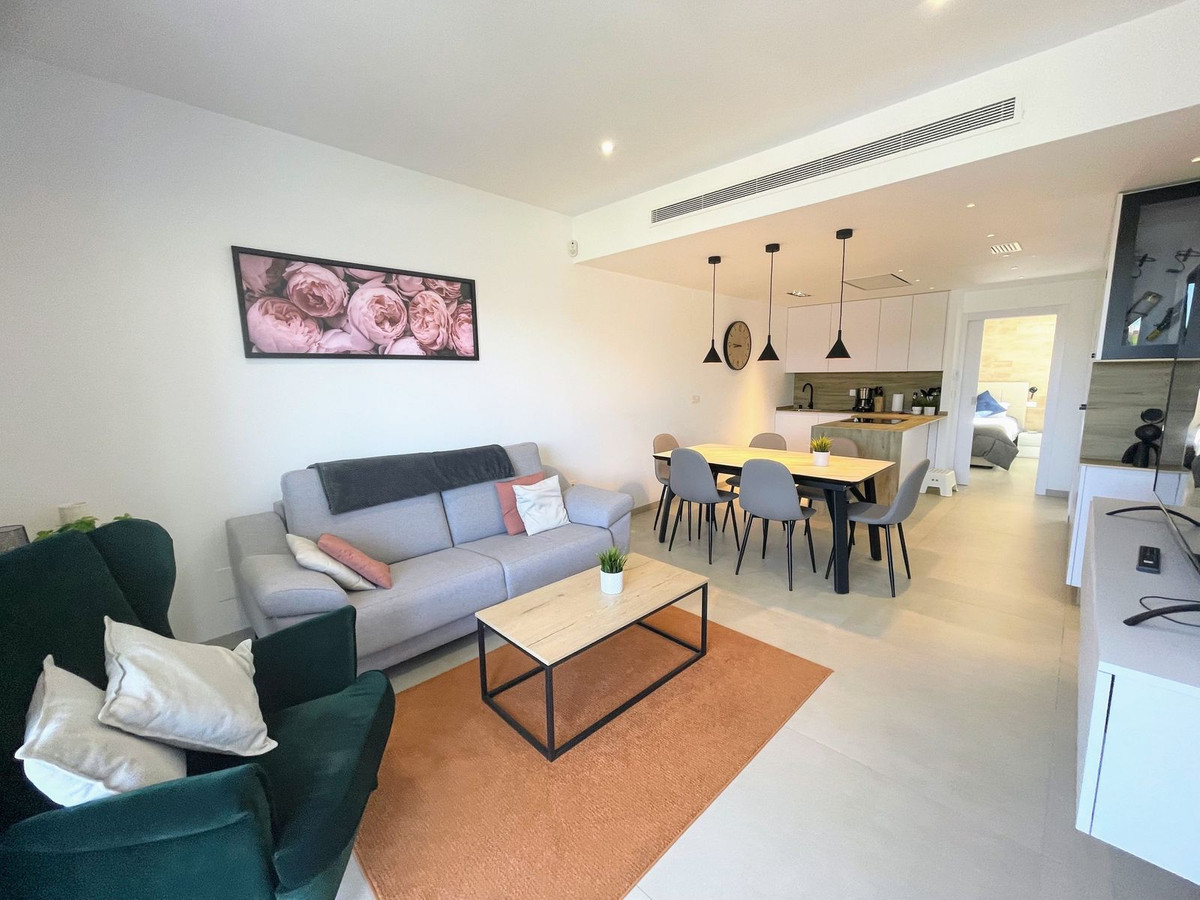 Discover La Llana Beach Resort located in the heart of San Pedro del Pinatar. This Penthouse Apartment consists of 3 bedrooms and 2 bathrooms, living/dining area and a fully fitted kitchen. The property benefits from a front terrace, a spacious solarium with outside kitchen, parking space and storage room