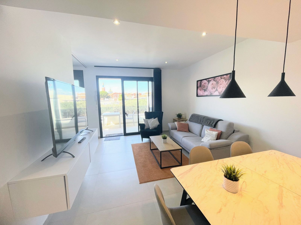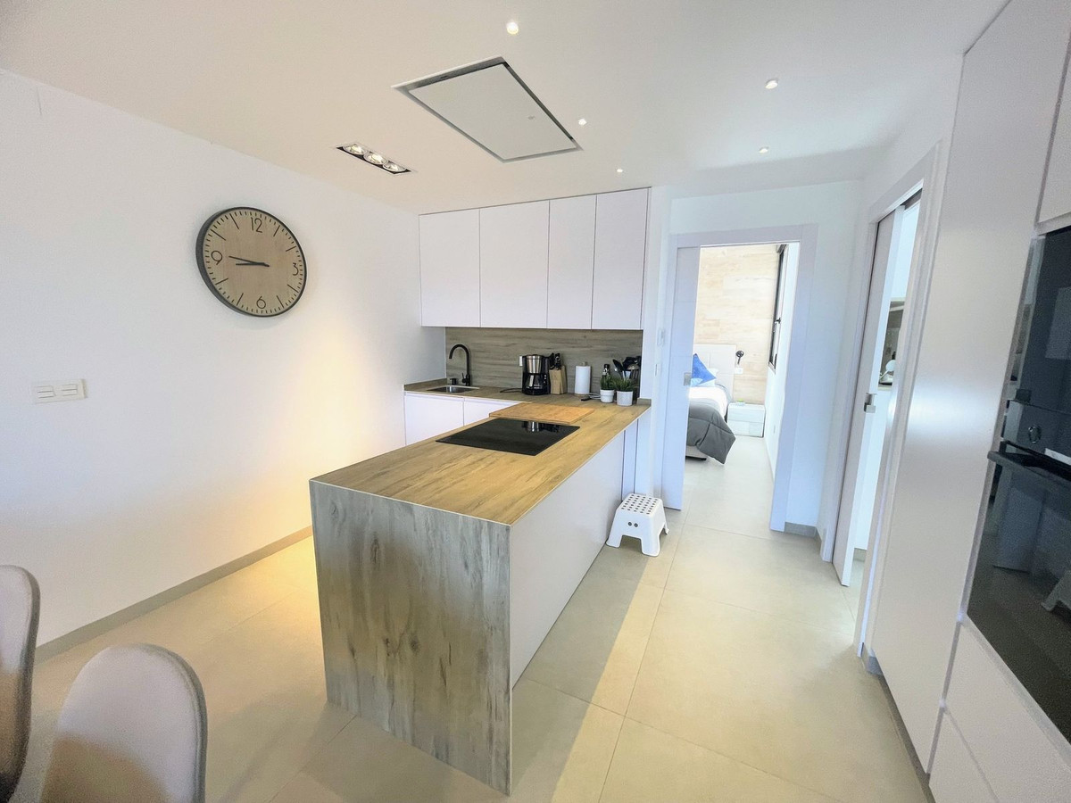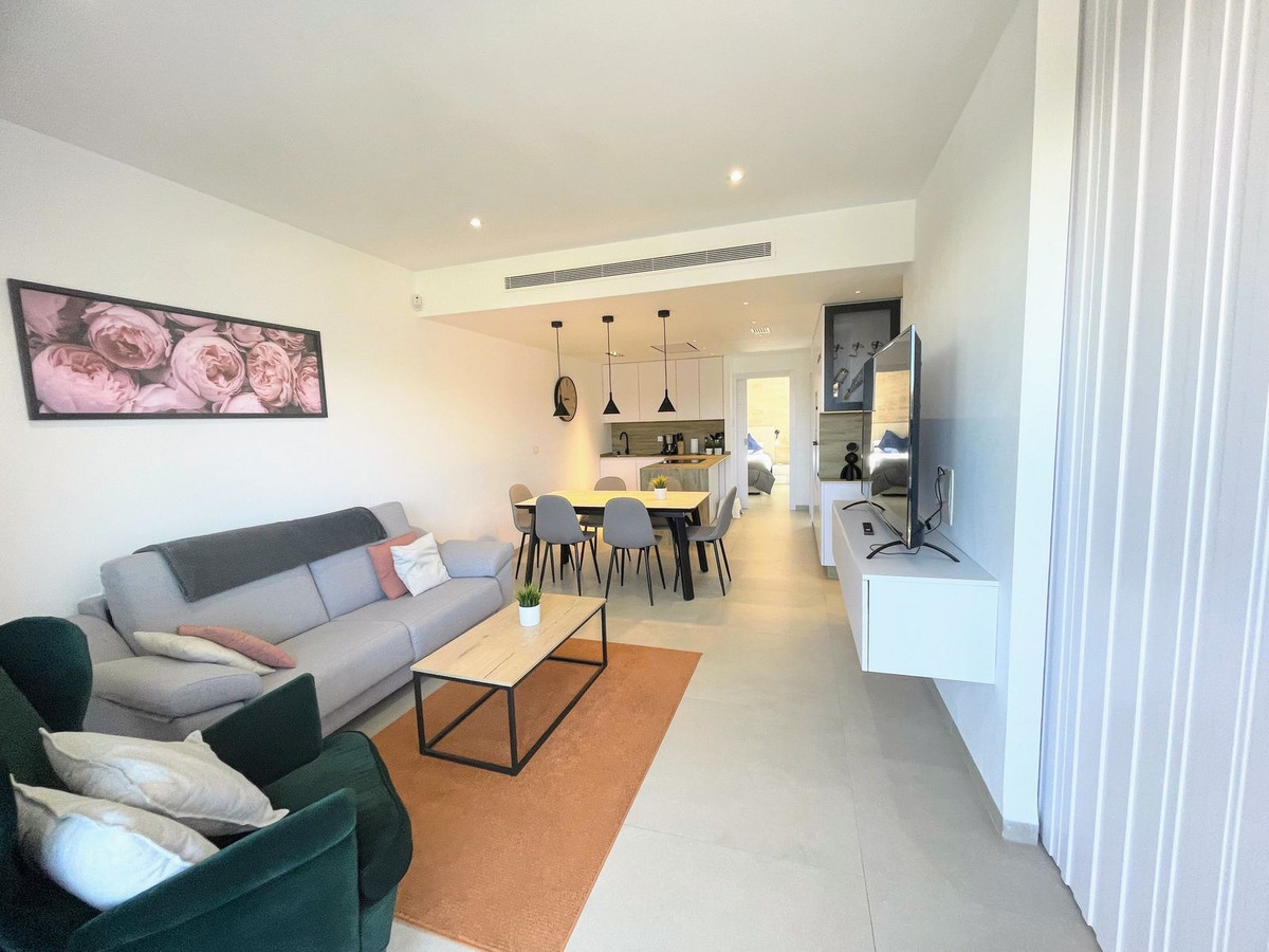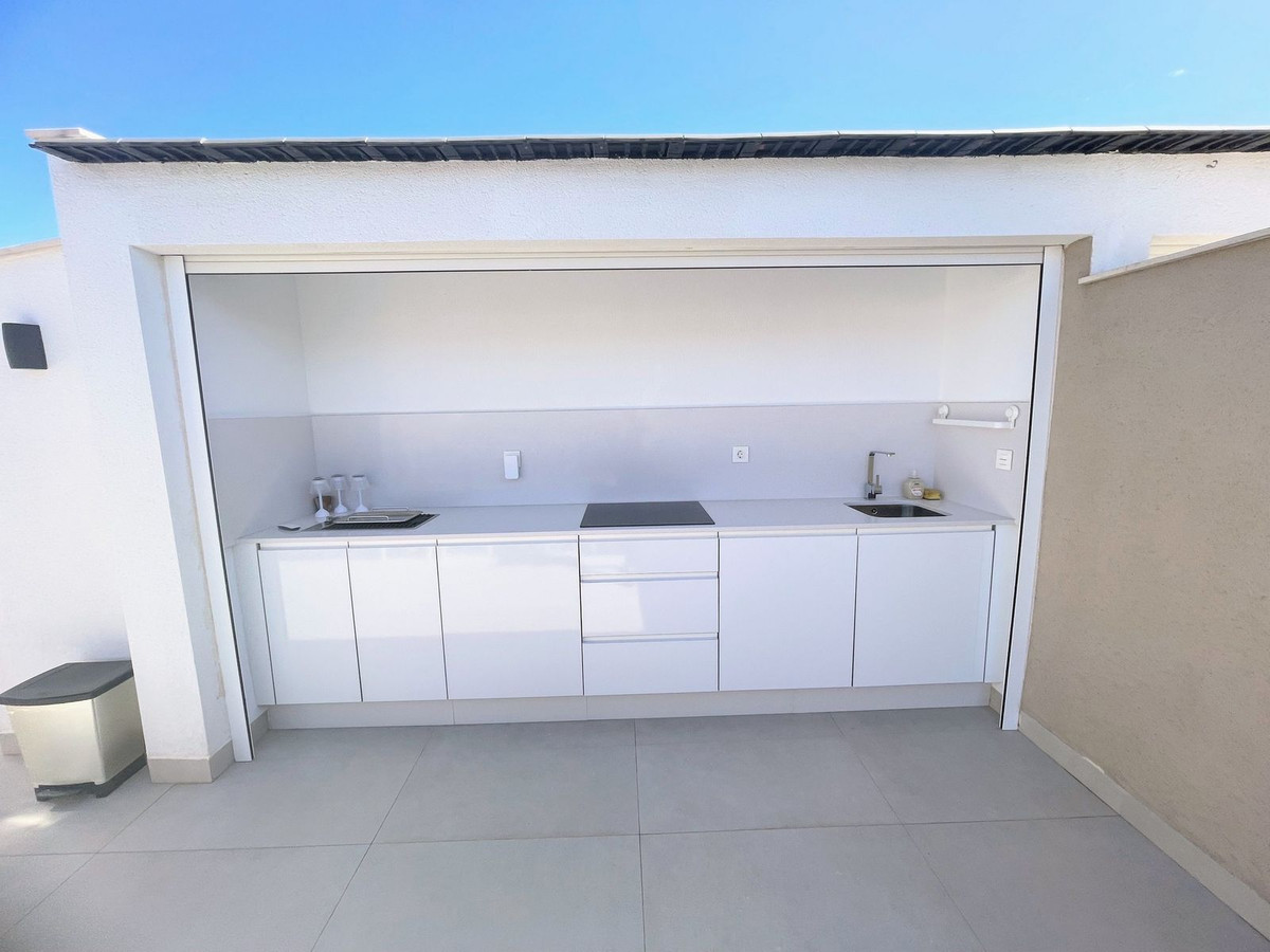 Discover La Llana Beach Resort located in the heart of San Pedro del Pinatar. This Penthouse Apartment consists of 3 bedrooms and 2 bathrooms, living/dining area and a fully fitted kitchen. The property benefits from a front terrace, a spacious solarium with outside kitchen, parking space and storage room