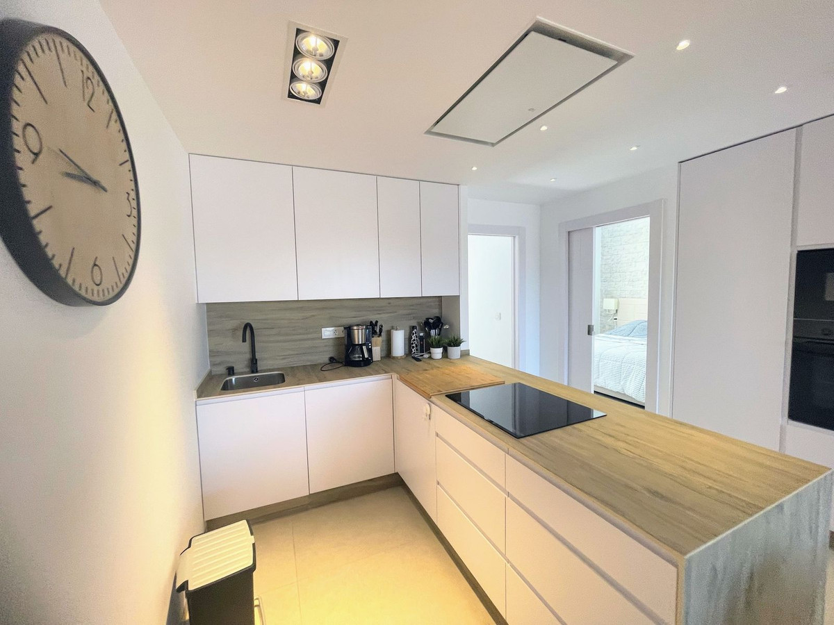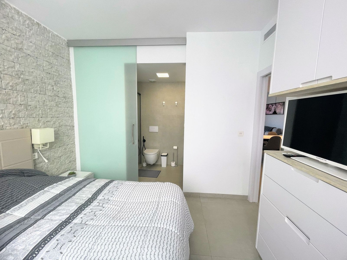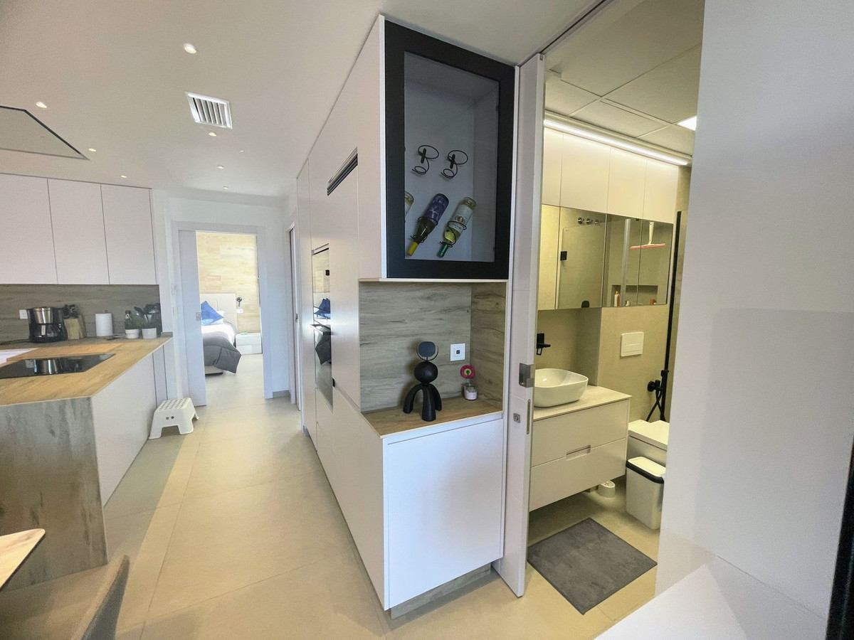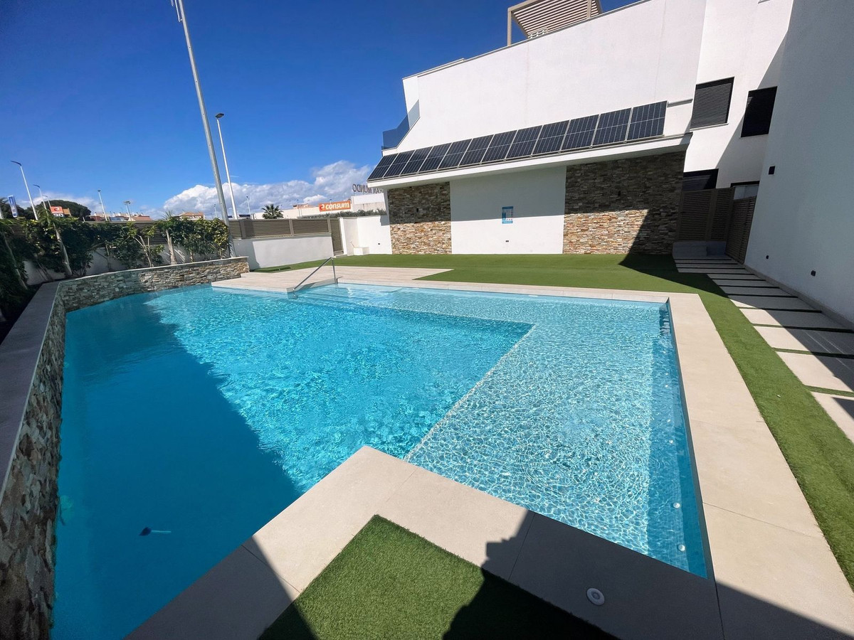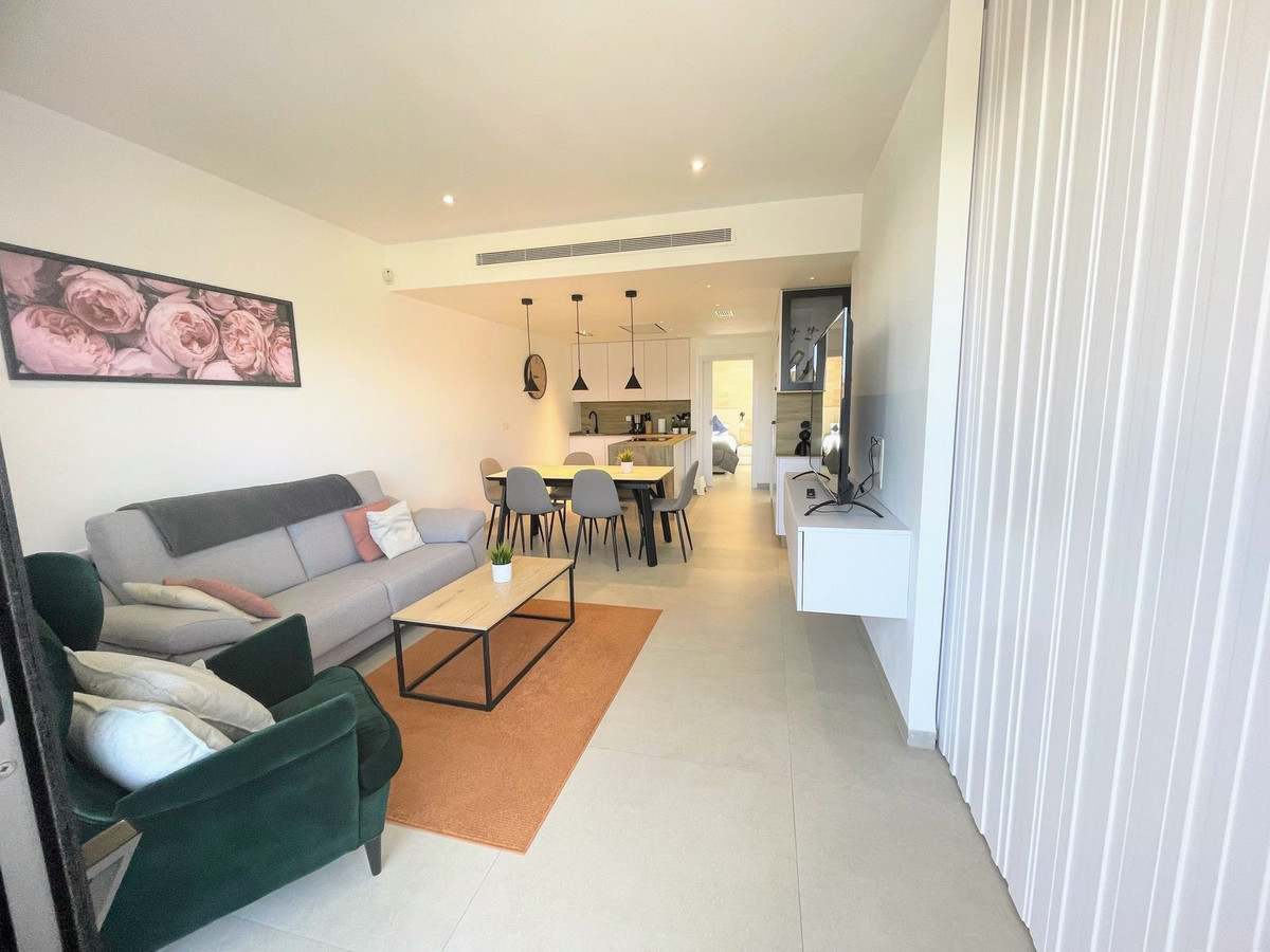 Discover La Llana Beach Resort located in the heart of San Pedro del Pinatar. This Penthouse Apartment consists of 3 bedrooms and 2 bathrooms, living/dining area and a fully fitted kitchen. The property benefits from a front terrace, a spacious solarium with outside kitchen, parking space and storage room