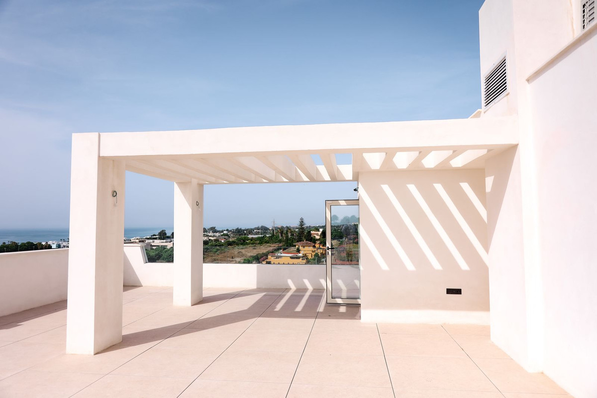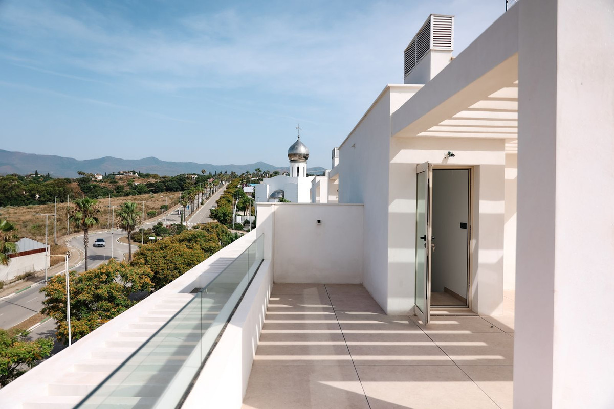 This elegant duplex penthouse with stunning sea views is located in one of the most promising areas of the Costa del Sol. Just minutes from the beach, it offers a strategic location that combines peace and privacy with excellent access to Estepona, Marbella, and all essential services. It is also very close to top international schools, including the prestigious Atlas American School.
