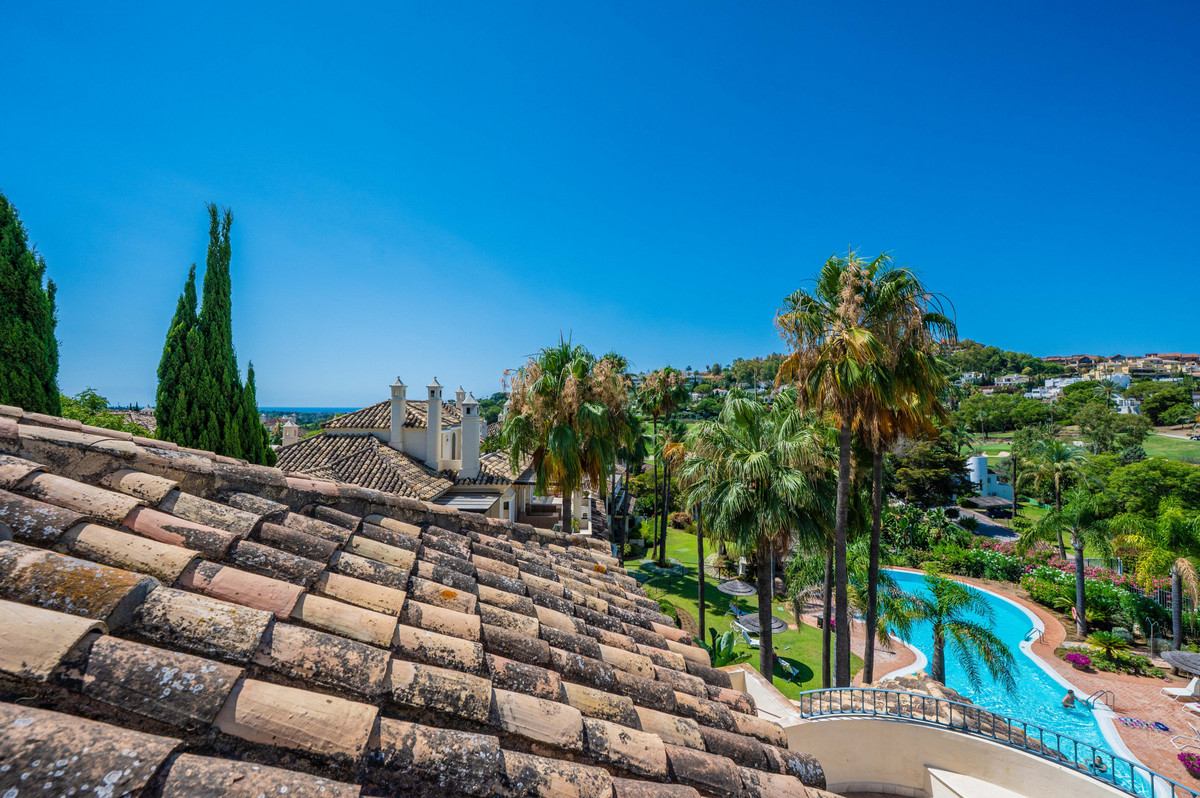 Located in the prestigious gated community of Las Alamandas, this spacious 3-bedroom duplex penthouse offers a perfect blend of luxury, privacy, and security in the heart of Nueva Andalucía — just minutes from Puerto Banús and within walking distance to renowned golf courses like Los Naranjos and Las Brisas.
