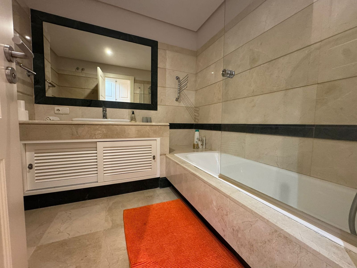 Upon entering through an elegant foyer, you are welcomed into a spacious living room that opens onto a large covered terrace of over 50m², with its own private garden and direct access to one of the swimming pools. Both bedrooms feature en-suite bathrooms. The fully equipped kitchen is separate.