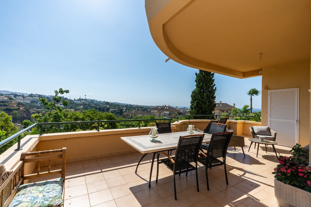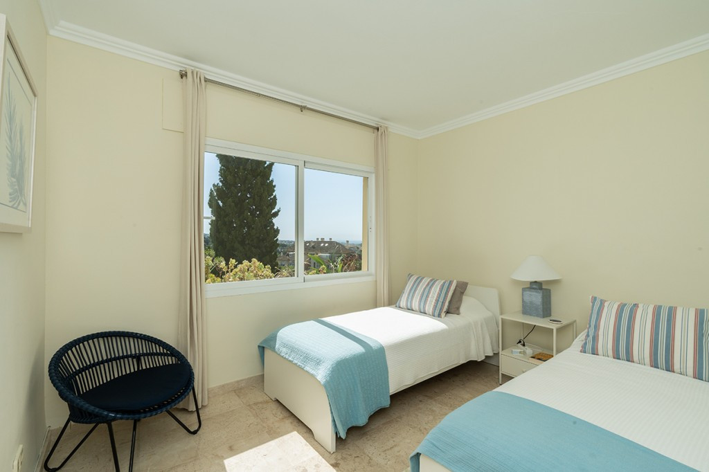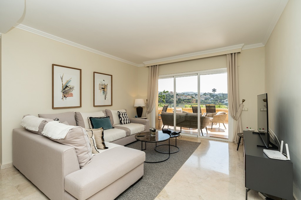 Beautiful 3-bedroom apartment in a prestigious Elviria complex, ideally located next to Greenlife Golf and close to all amenities and the beach. Enjoy lovely sea, coastal, and panoramic green views from this east and west-facing home. Features include a fully equipped kitchen, private and community parking, a stunning communal pool, and lush gardens. A perfect blend of comfort and location.