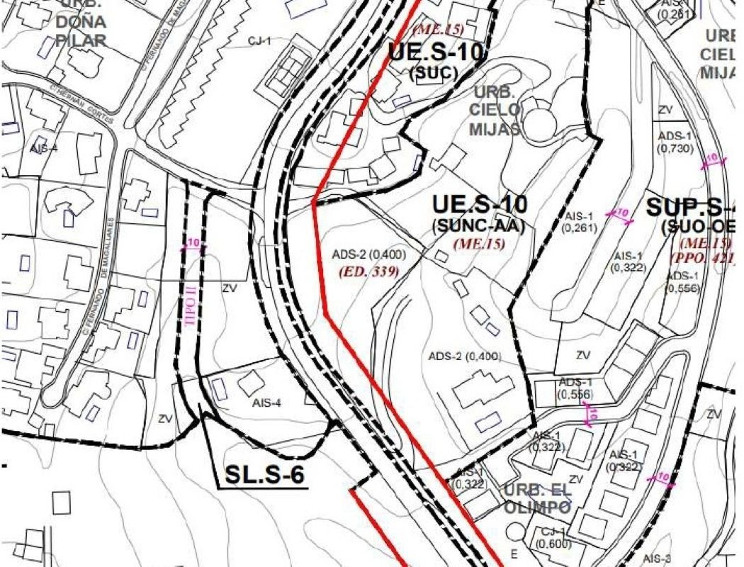Denna urbana tomt ligger i ett privilegierat läge i Mijas kommun. Dess höga läge erbjuder magnifik utsikt över Costa del Sol. Marken ligger inom UE S-10 Execution Unit och har en slutgiltigt godkänd detaljerad studie (ED. 339) "Cielo Mijas" daterad 27 april 2007, som föreslår utveckling av ett bostadskomplex med 18 parhus, vardera på 176 m2, med en parkeringsplats. En teknisk rapport och detaljerad studie ingår också. Köparen måste genomföra Grund- och Utförandeprojektet och ansöka om bygglov.