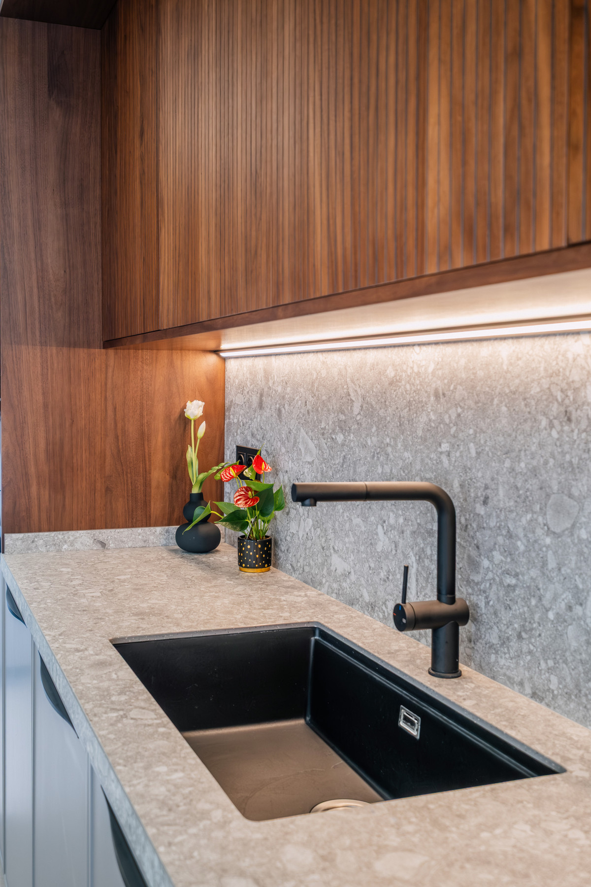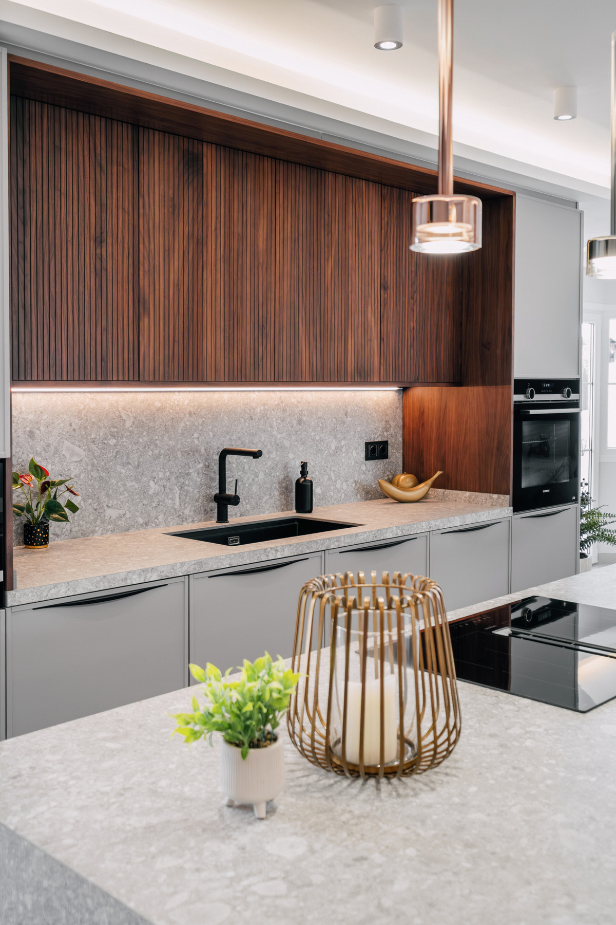 Fullt renoverad 2025 kombinerar den naturliga texturer, rik valnötsträfinish och genomtänkt belysning i ett tidlöst arkitektoniskt uttryck. Den tvåplanslayouten har ett rymligt vardagsrum med öppen planlösning och ett toppmodernt kök med Siemensapparater, köksö i sten, dubbla kylskåp, integrerat vinskåp och ett serveringskök—perfekt för att underhålla med stil.