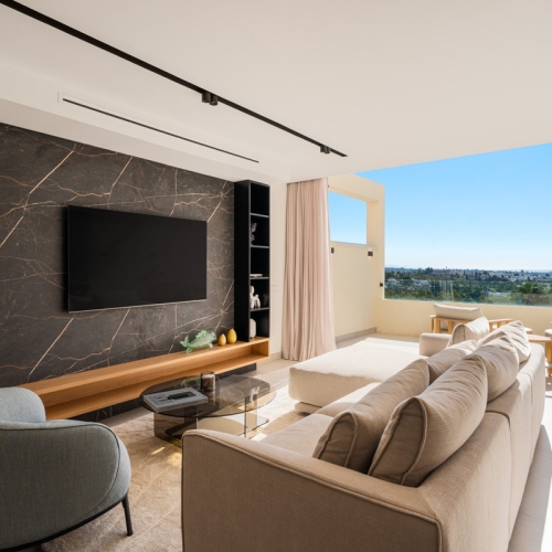 Penthouse Las Lolas är en noggrant renoverad duplexlägenhet belägen i det lugna bostadsområdet Las Lolas i Nueva Andalucía, Marbella. Bara några minuter från Puerto Banús och den välkända Golfdalen, erbjuder bostaden modern medelhavselegans med panoramautsikt över La Concha-berget och frodig grönska.