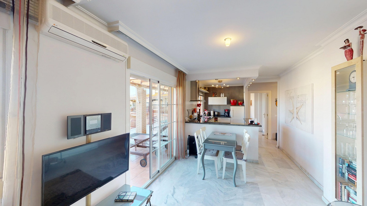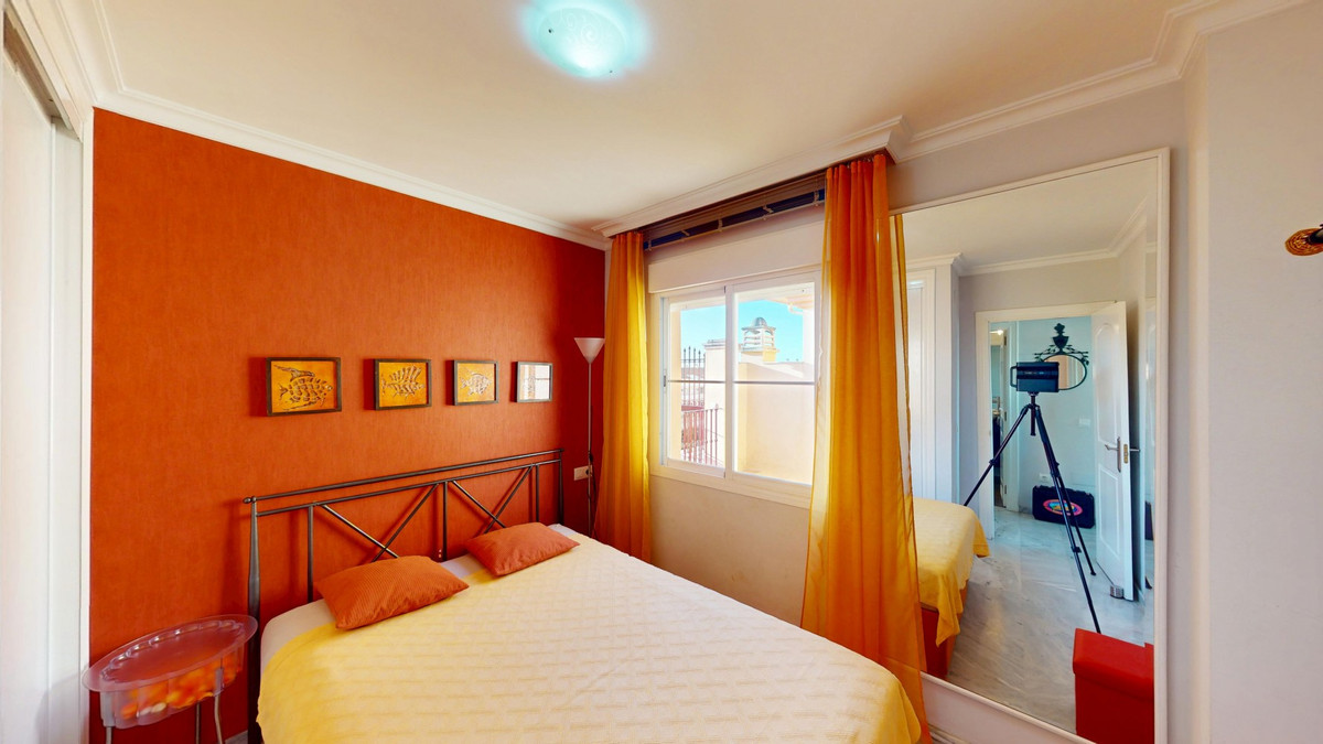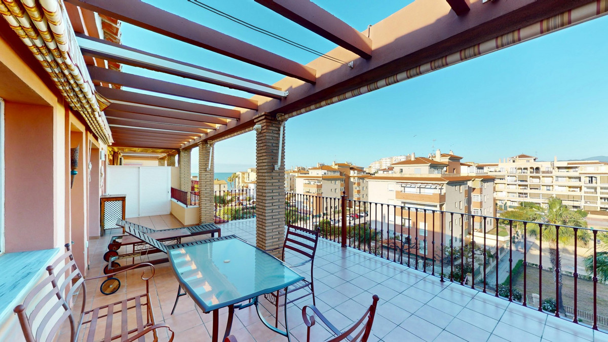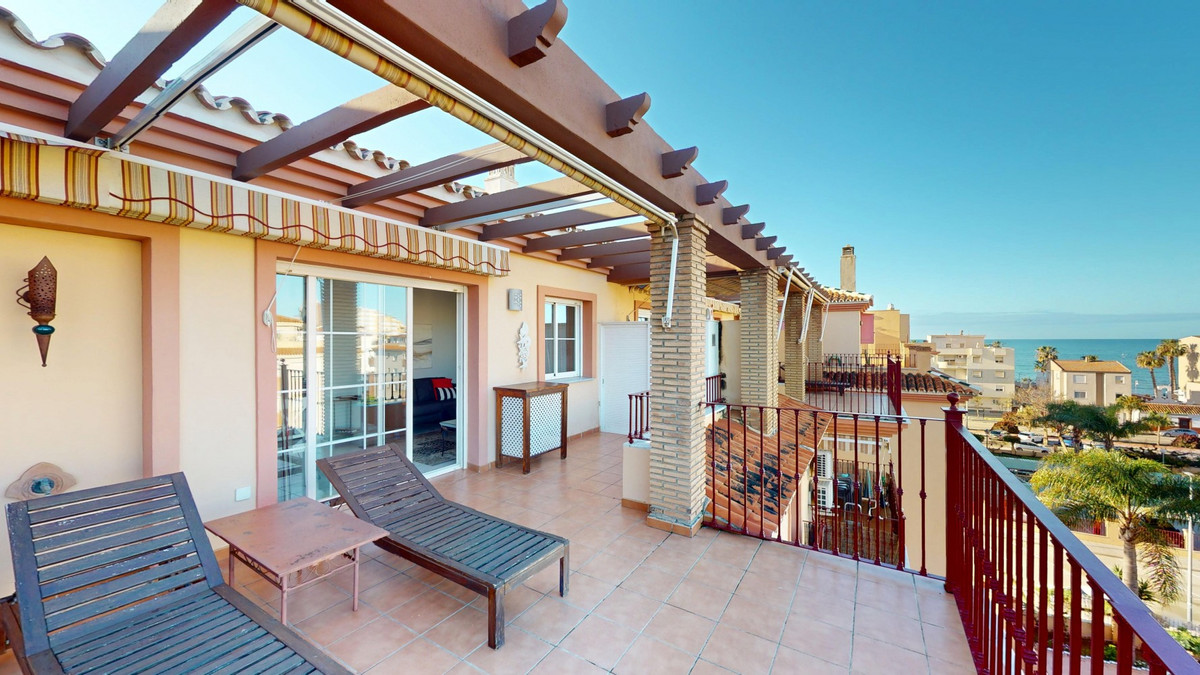 Welcome to this charming penthouse in the coastal village of Mezquitillaa perfect blend of comfort, functionality, and Mediterranean lifestyle. This well-designed apartment stands out with two private terraces, both offering lovely sea views and plenty of space to relax, dine, or entertain outdoors. The bright and airy living room flows seamlessly into the kitchen and opens directly onto one of the terraces, creating a wonderful indoor-outdoor feel. One of the two bedrooms also has direct access to the terrace, bringing in plenty of natural light and sea breezes. Both bedrooms are equipped with built-in wardrobes, and the entire apartment benefits from air conditioning for year-round comfort. The kitchen is compact yet stylish, featuring sleek white cabinetry, black countertops, and stainless steel appliances. The open-plan layout and thoughtfully chosen décorwith warm tones and pops of colorcreate a welcoming and contemporary atmosphere. The bathroom is modern and well-appointed, offering a combination bathtub and shower, a vessel sink, and quality fixtures that make the space both functional and pleasant. A private parking space and a separate storage room offer added convenience, and the well-kept community includes a shared poolideal for a refreshing dip on warm days. Located just a short stroll from the beach, local restaurants, shops, and other amenities, this penthouse is ideal for those looking for a full-time residence, a relaxing holiday home, or a solid investment on the sunny coast. We are pleased to be able to present this dream property to you soon, either personally or via virtual viewing. Because this world is unique - just like our Axarquía. In Andalusia. On the Costa del Sol. Here, on the sunny side of life...